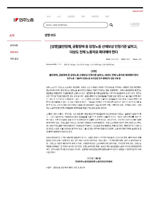 [성명] 불안장애, 공황장애 등 감정노동 산재보상 인정기준 넓히고, 대상도 전체 노동자로 확대해야 한다