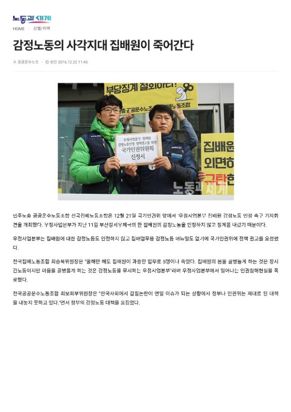 [기사] 감정노동의 사각지대 집배원이 죽어간다