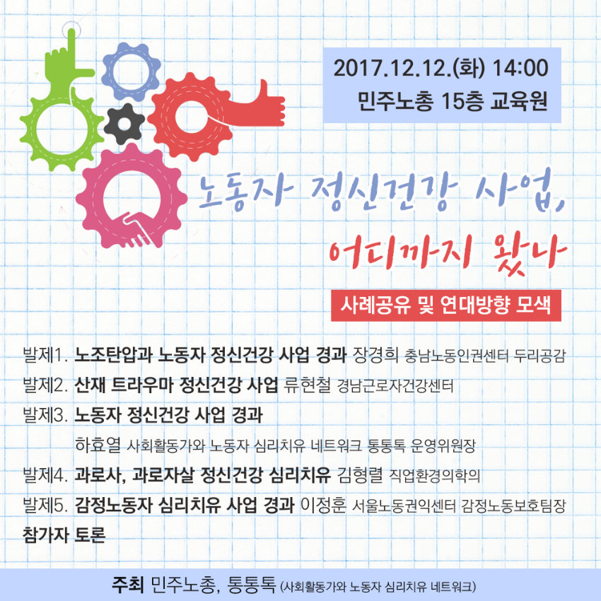 [웹자보] 노동자 정신건강 사업 어디까지 왔나 사례공유 및 연대방향 모색