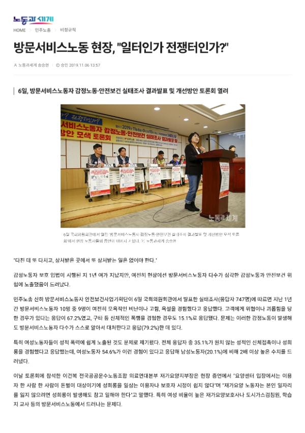 [기사] 방문서비스노동 현장, 일터인가 전쟁터인가