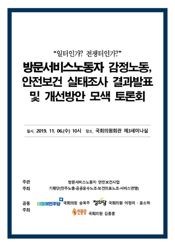 [자료집] 일터인가 전쟁터인가 방문서비스노동자 감정노동, 안전보건 실태조사 결과발표 및 개선방안 모색 토론회