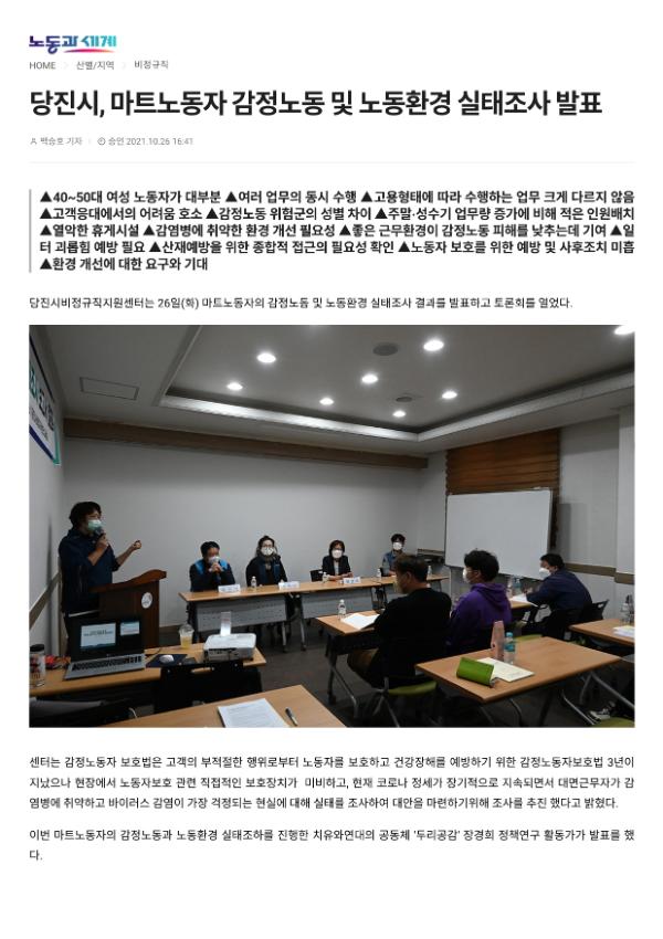 [기사] 당진시, 마트노동자 감정노동 및 노동환경 실태조사 발표