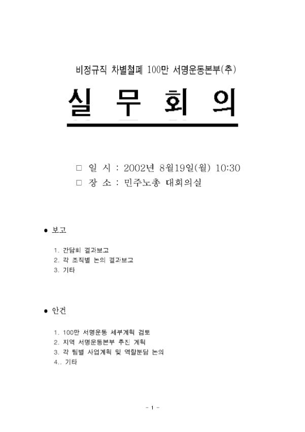 [자료집] 비정규직 차별철폐 100만 서명운동 추진을 위한 실무회의 자료