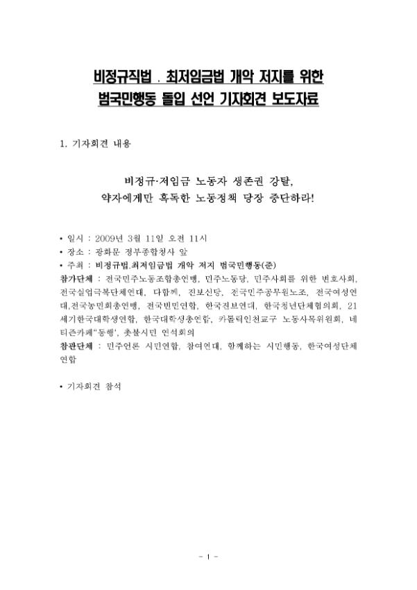 [보도자료] 비정규직법 최저임금법 개악 저지를 위한 노동시민사회단체 범국민행동 돌입 선언