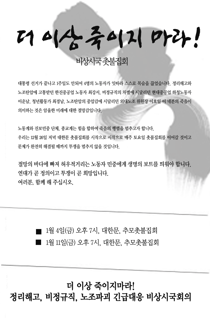 [웹자보] 더 이상 죽이지 마라 비상시국 촛불집회