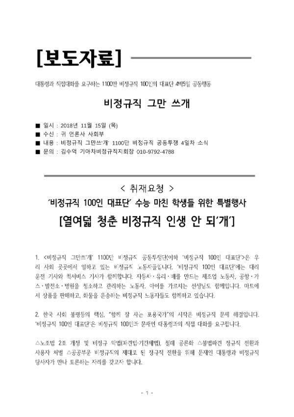 [취재요청] 비정규직 그만쓰개 비정규직 100인의 대표단 4박5일 공동행동 4일차