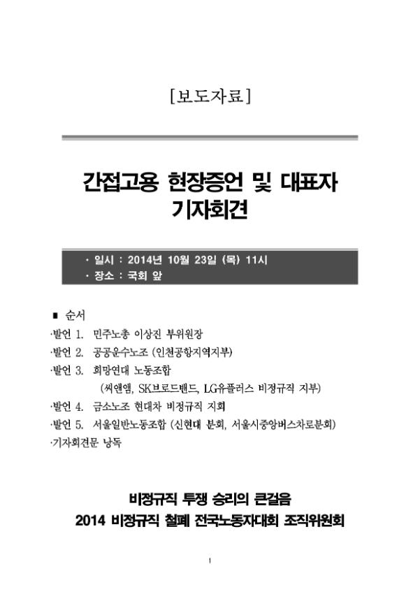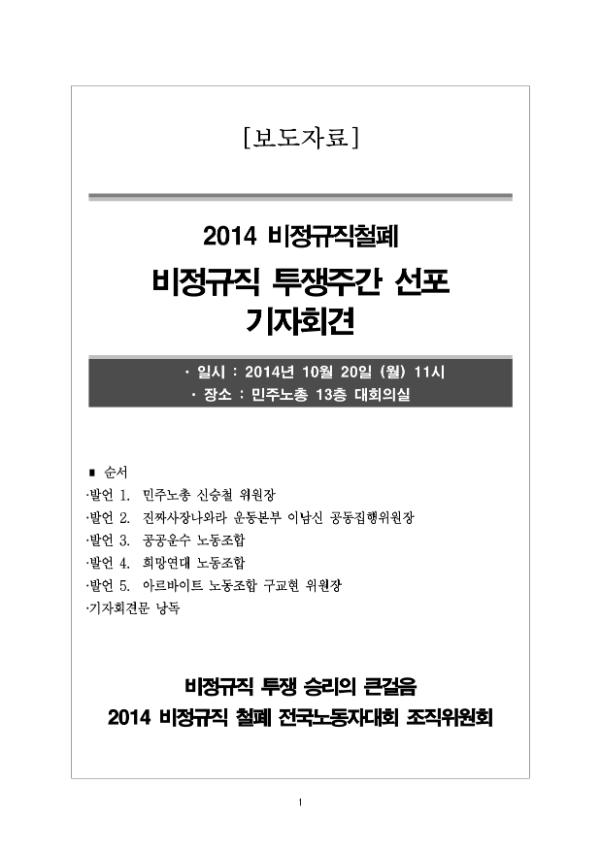 [보도자료] 비정규노동자 투쟁승리를 위한 큰 걸음-2014년 비정규직 철폐 전국노동자 투쟁주간 선포