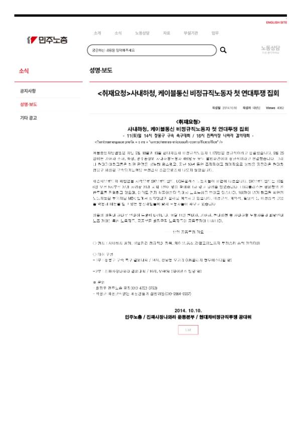 [취재요청] 사내하청, 케이블통신 비정규직노동자 첫 연대투쟁 집회