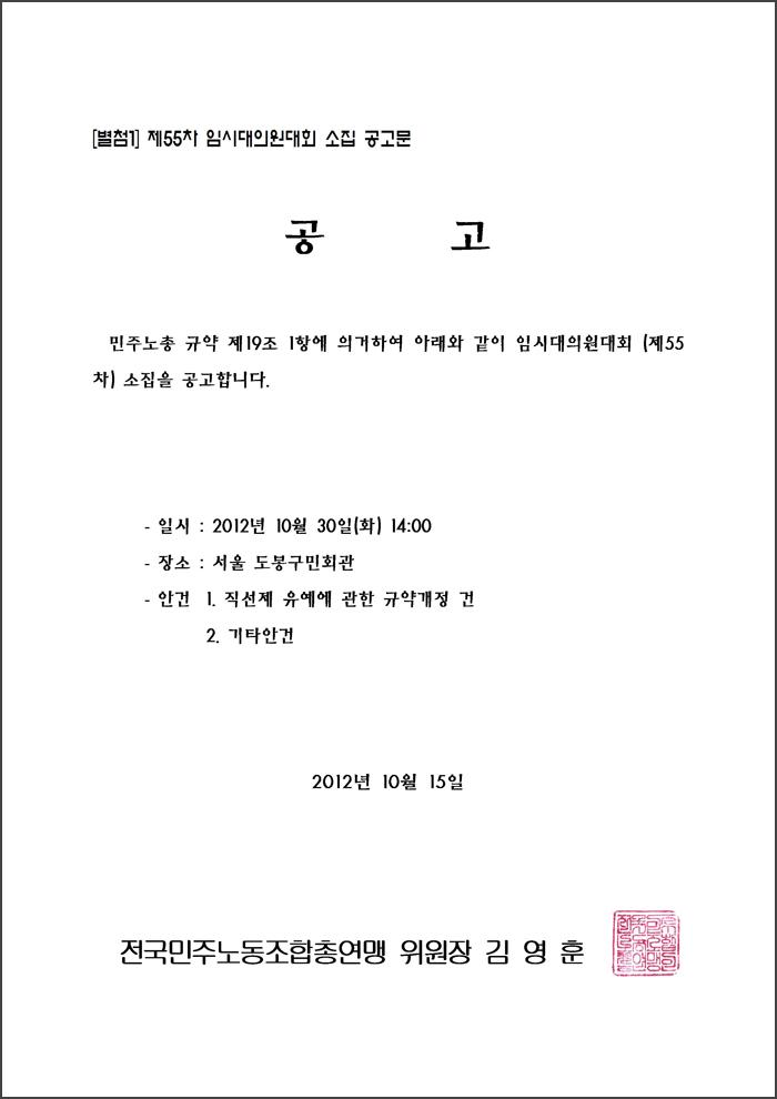 [보도자료] 제55차 임시대의원대회 소집 공고