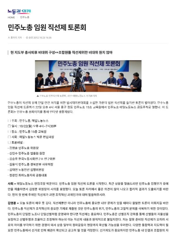 [기사] 민주노총 임원 직선제 토론회