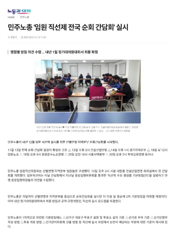 [기사] 민주노총 임원 직선제 전국 순회 간담회 실시