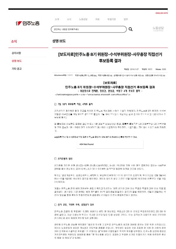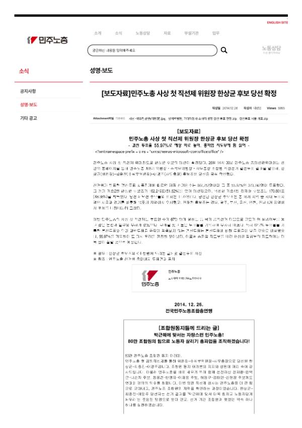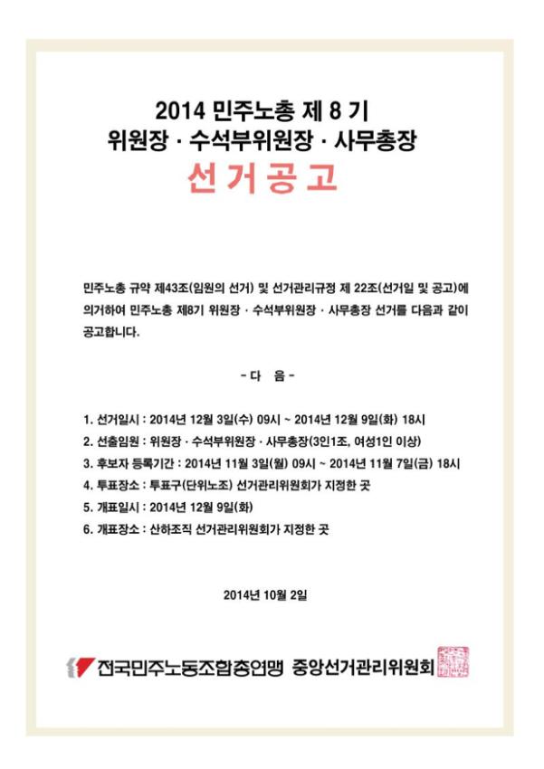 [보도자료] 2014 민주노총 제8기 위원장.수석부위원장.사무총장 선거공고