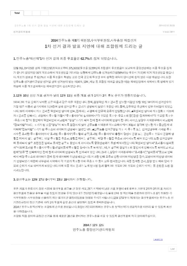 [보도자료] 민주노총 1차 선거 결과 발표 지연에 대한 조합원께 드리는 글