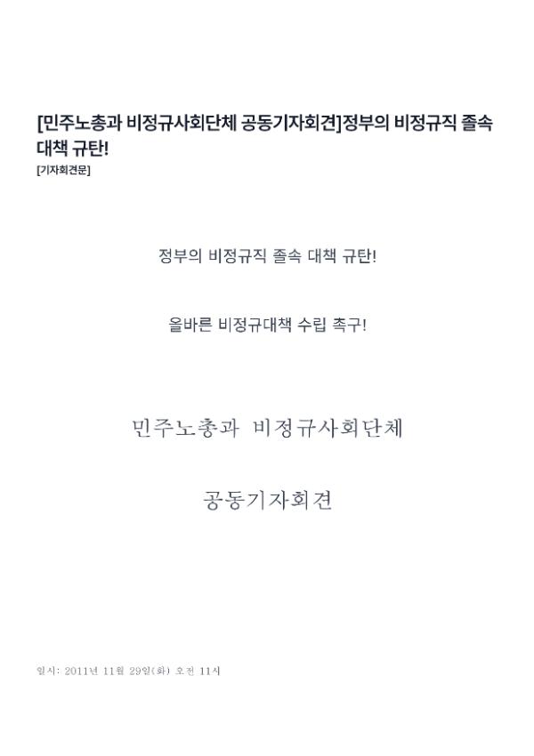 [기자회견문] [민주노총과 비정규사회단체 공동기자회견]정부의 비정규직 졸속 대책 규탄! 출처 한국비정규노동센터