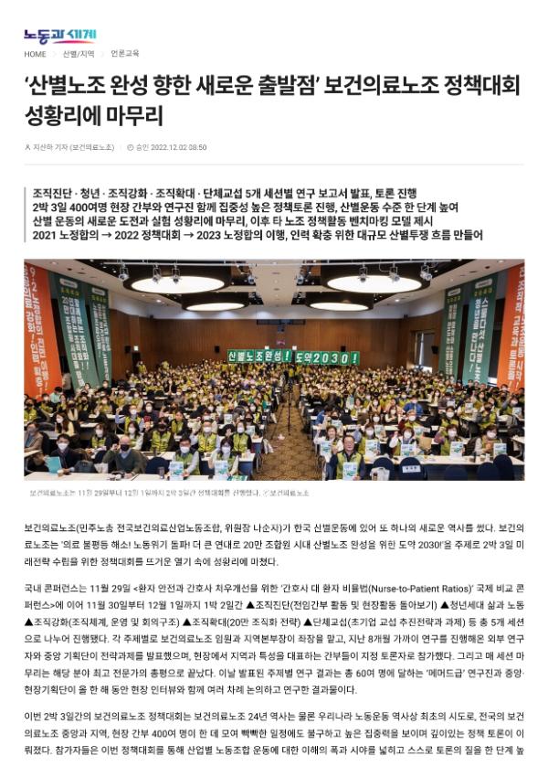[기사] 산별노조 완성 향한 새로운 출발점 보건의료노조 정책대회 성황리에 마무리