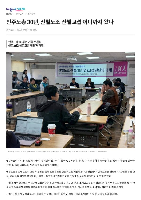 [기사] 민주노총 30년, 산별노조.산별교섭 어디까지 왔나