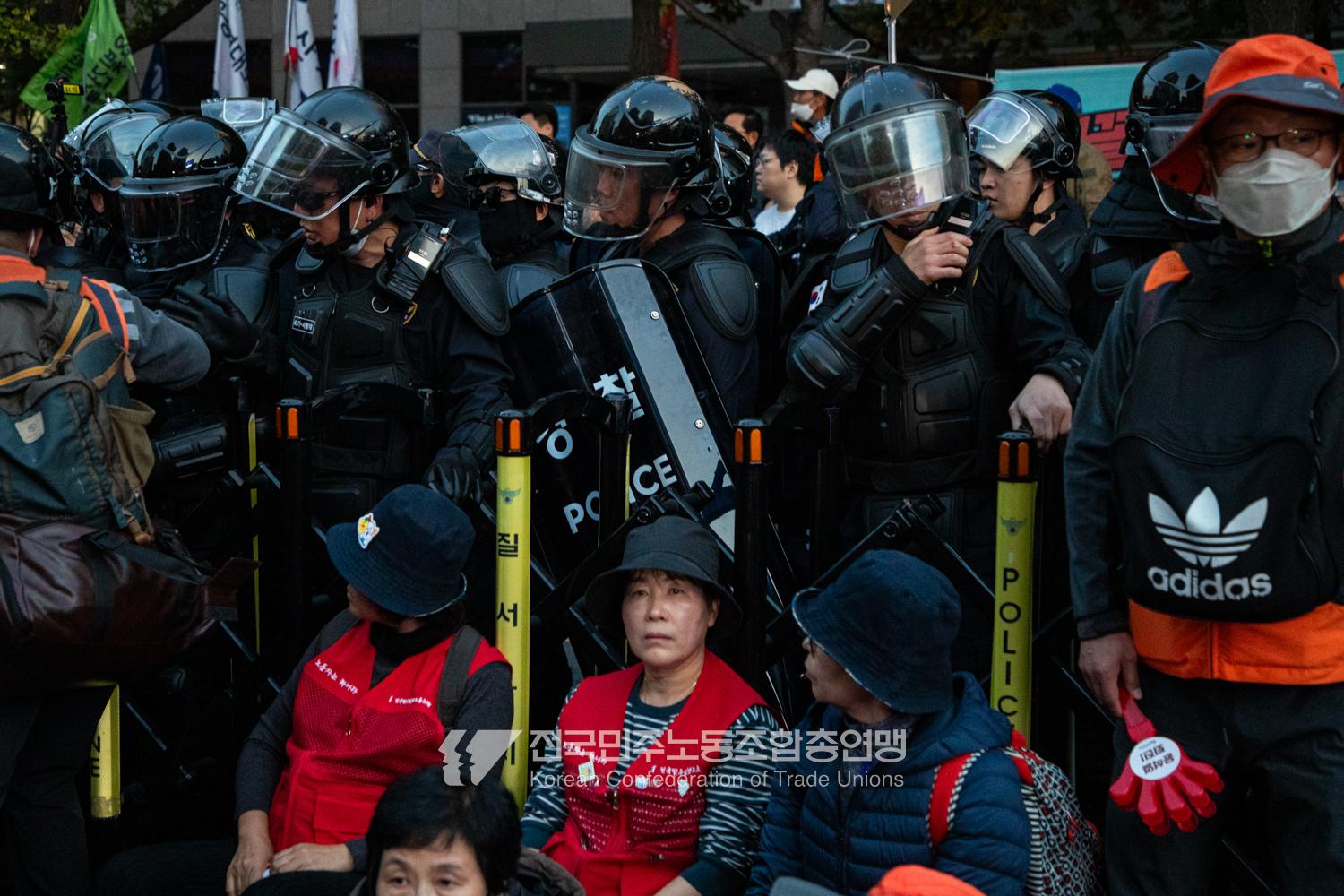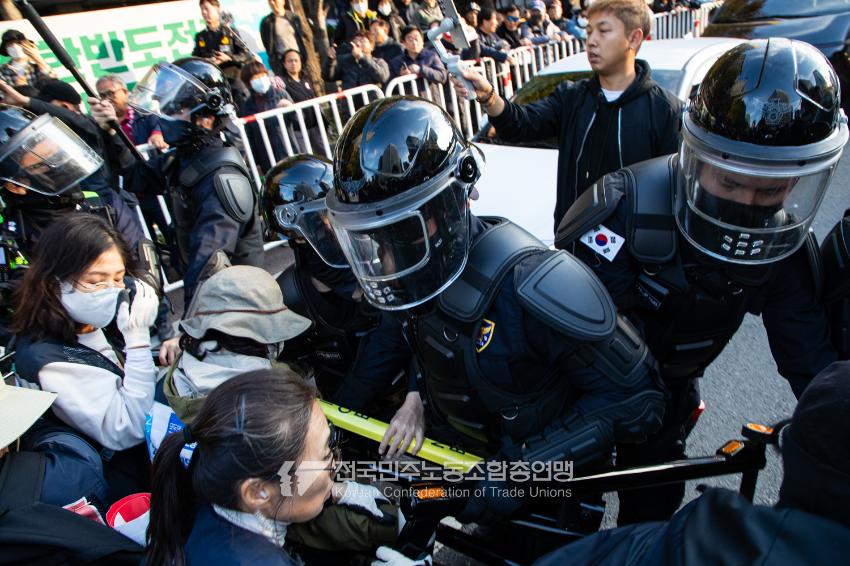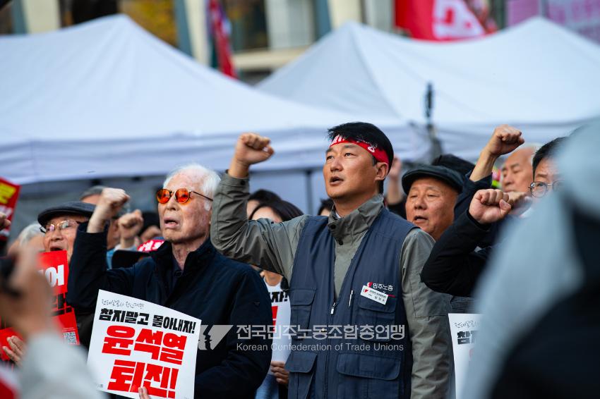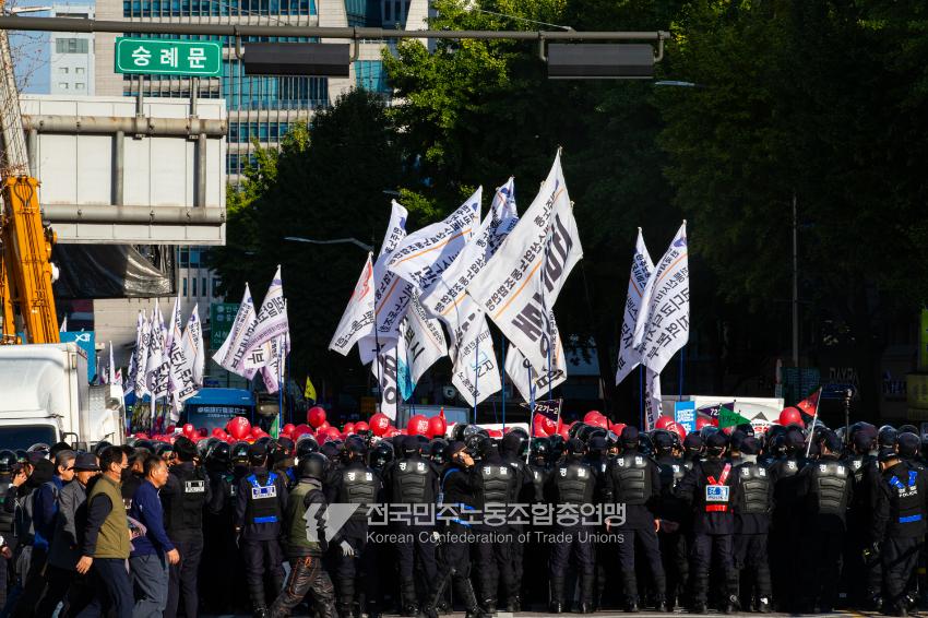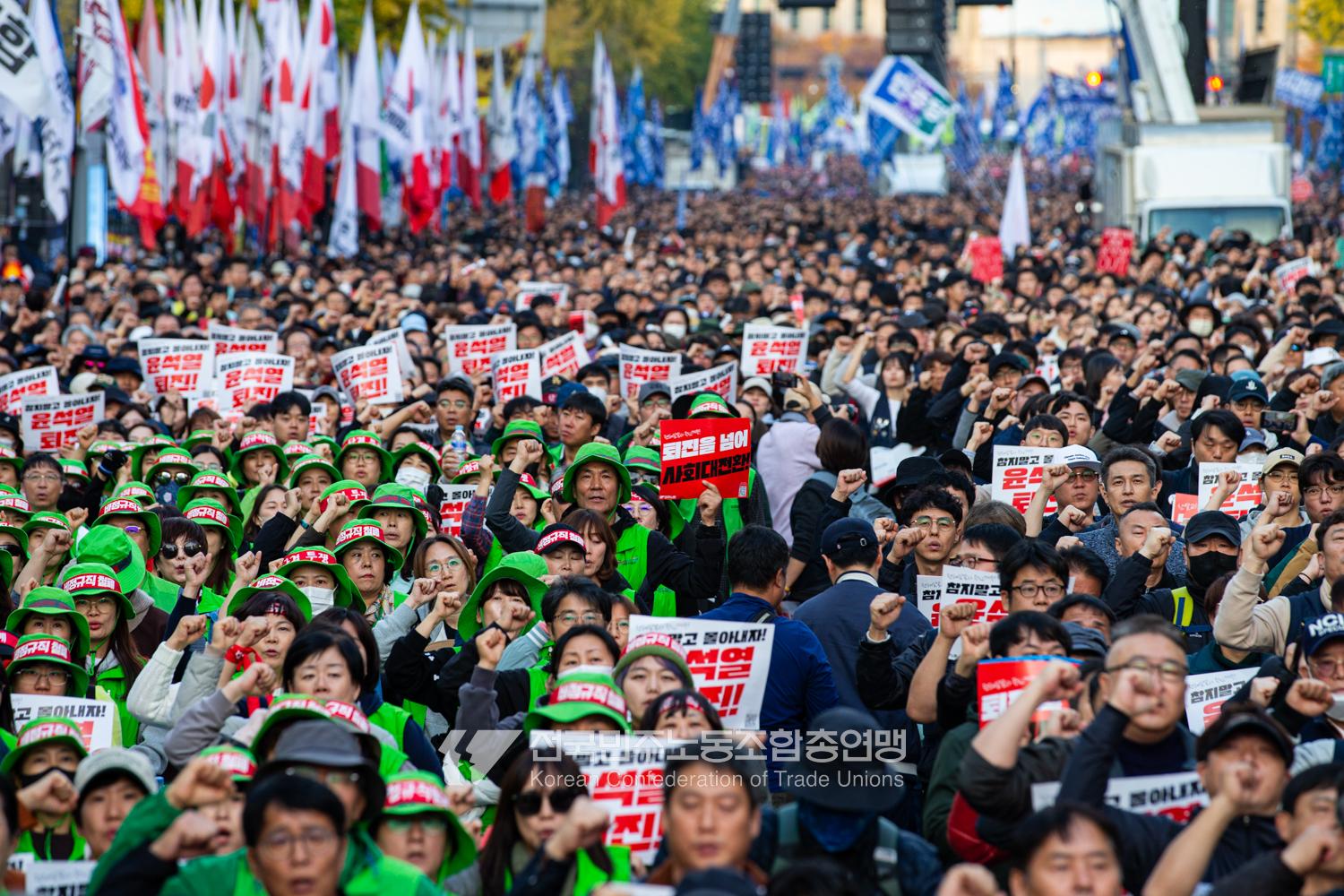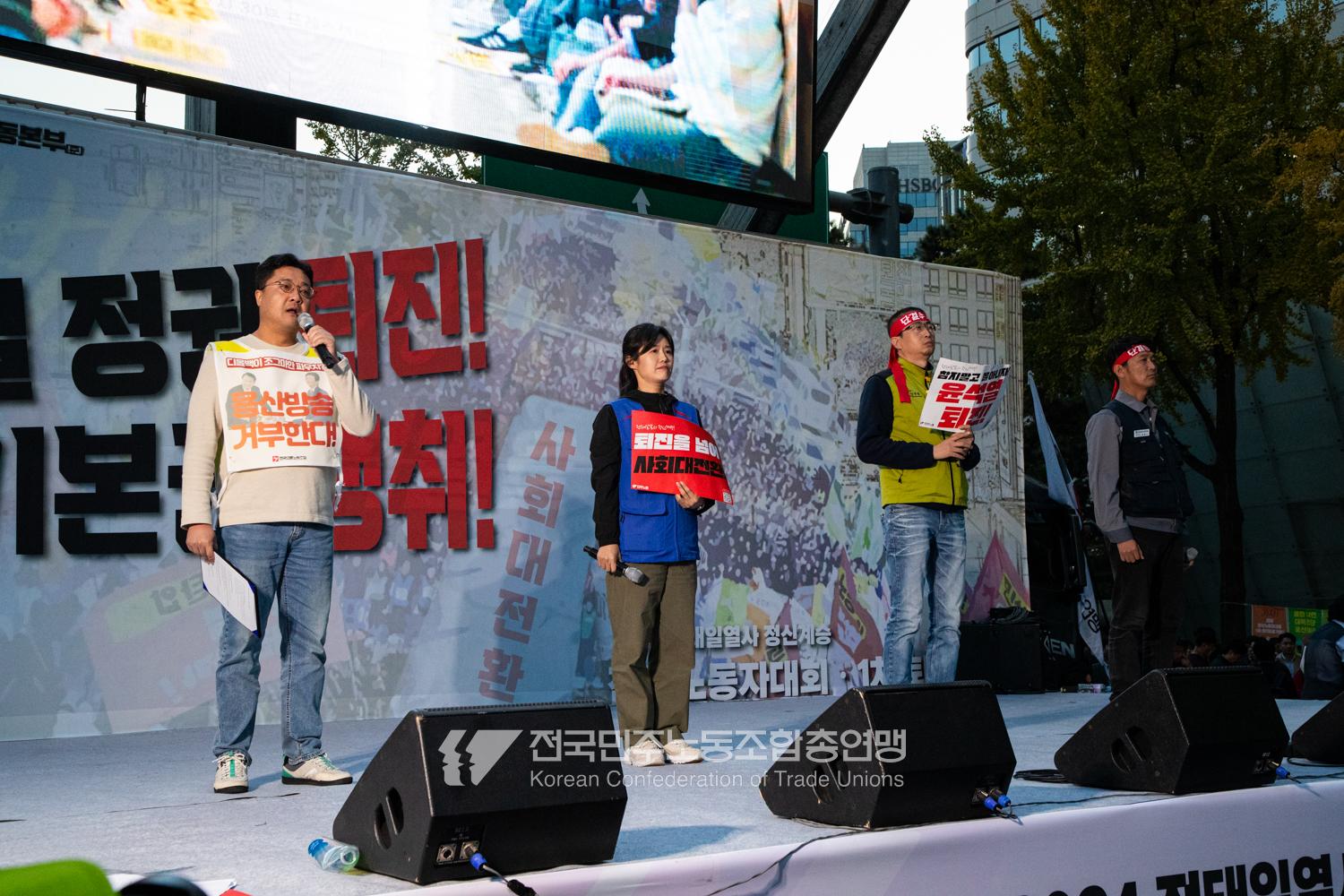 민주노총 10만여 조합원이 2024년 11월9일 서울 세종대로에 모여 윤석열정권 퇴진광장을 열기 위한 전태일열사 정신계승 2024 전국노동자대회를 열었다. 민주노총 16개 산별연맹이 도심 14곳에서 사전대회를 연 뒤 각기 다른 경로로 행진하며 본대회 장소로 모였다. 행진 과정에서 경찰의 과도한 도발과 폭력으로 인해 부상자 및 연행자가 다수 발생하기도 했다.
