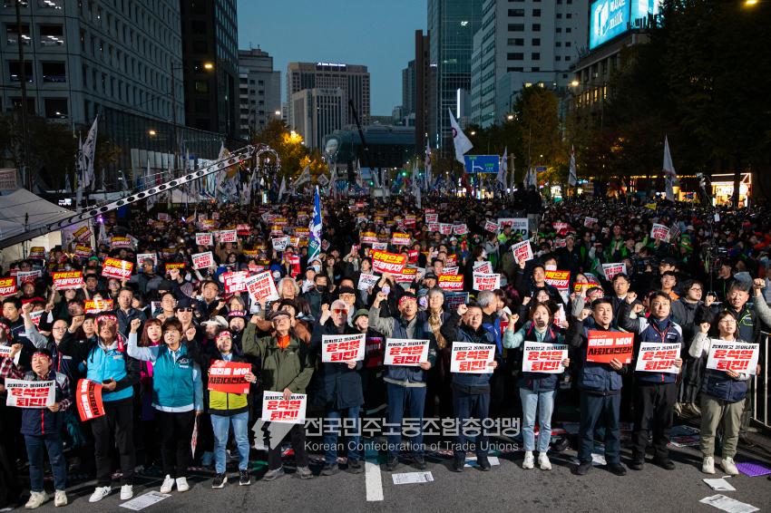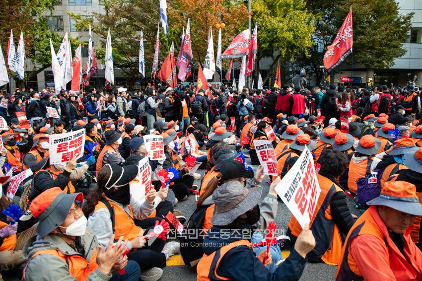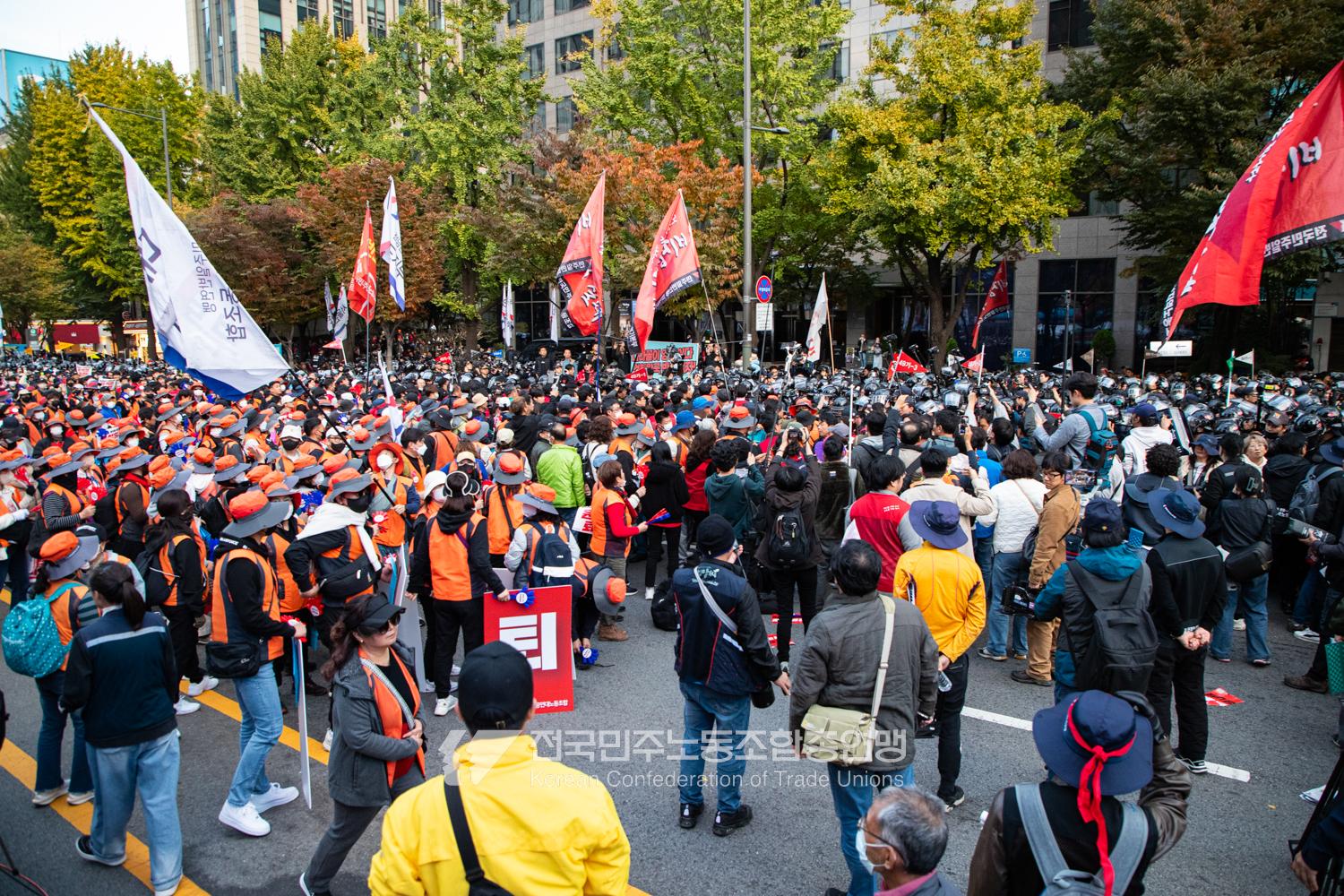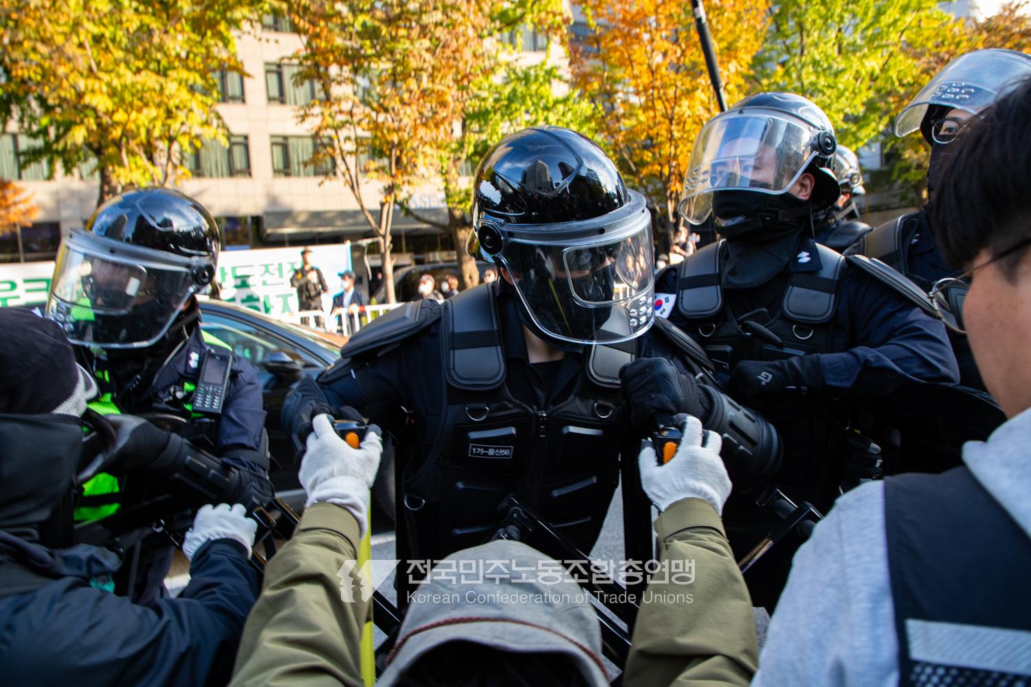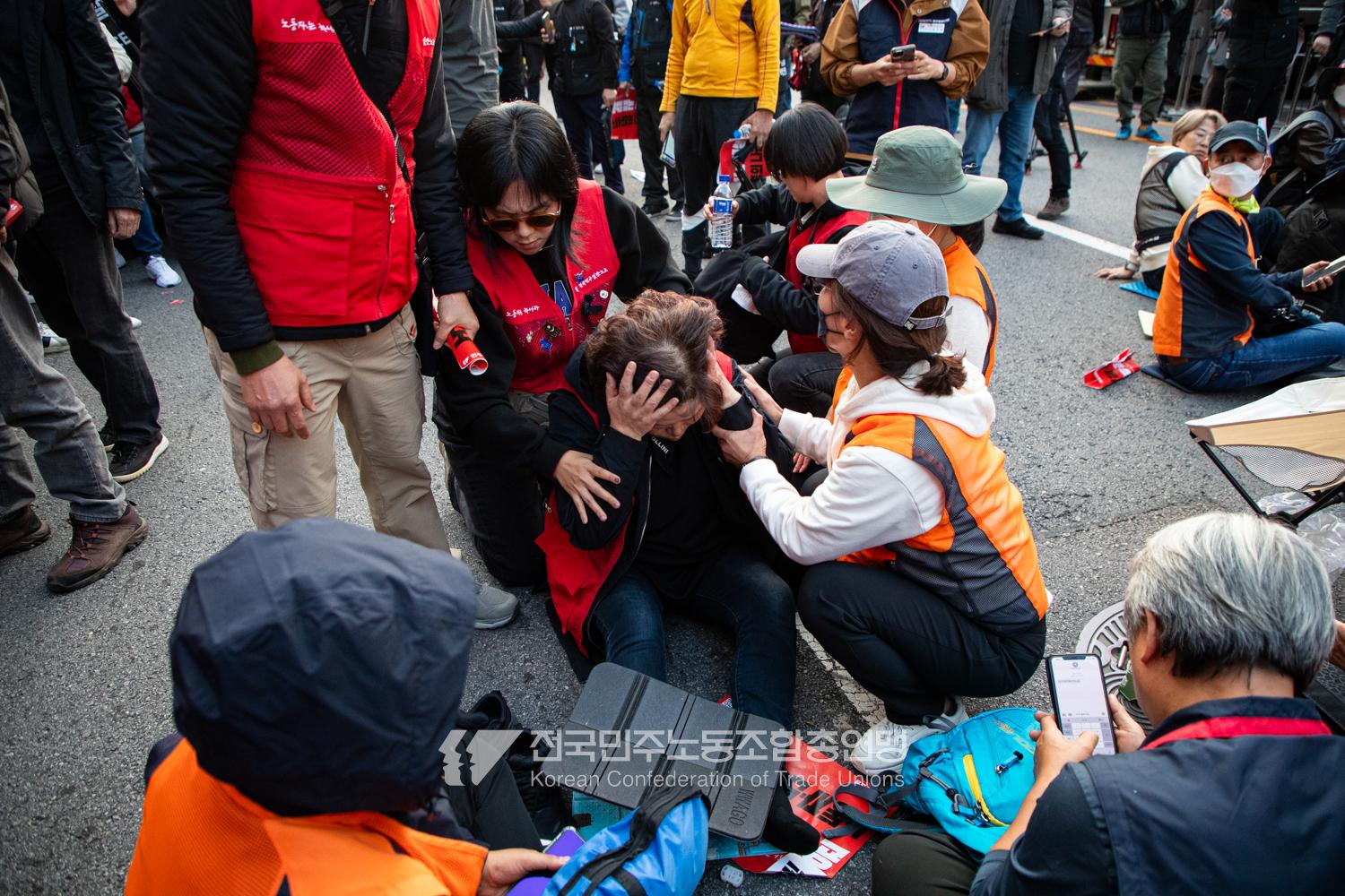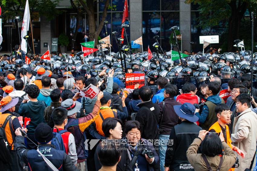 민주노총 10만여 조합원이 2024년 11월9일 서울 세종대로에 모여 윤석열정권 퇴진광장을 열기 위한 전태일열사 정신계승 2024 전국노동자대회를 열었다. 민주노총 16개 산별연맹이 도심 14곳에서 사전대회를 연 뒤 각기 다른 경로로 행진하며 본대회 장소로 모였다. 행진 과정에서 경찰의 과도한 도발과 폭력으로 인해 부상자 및 연행자가 다수 발생하기도 했다.