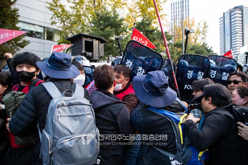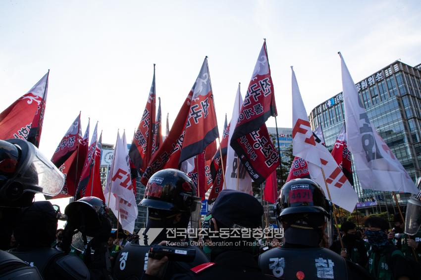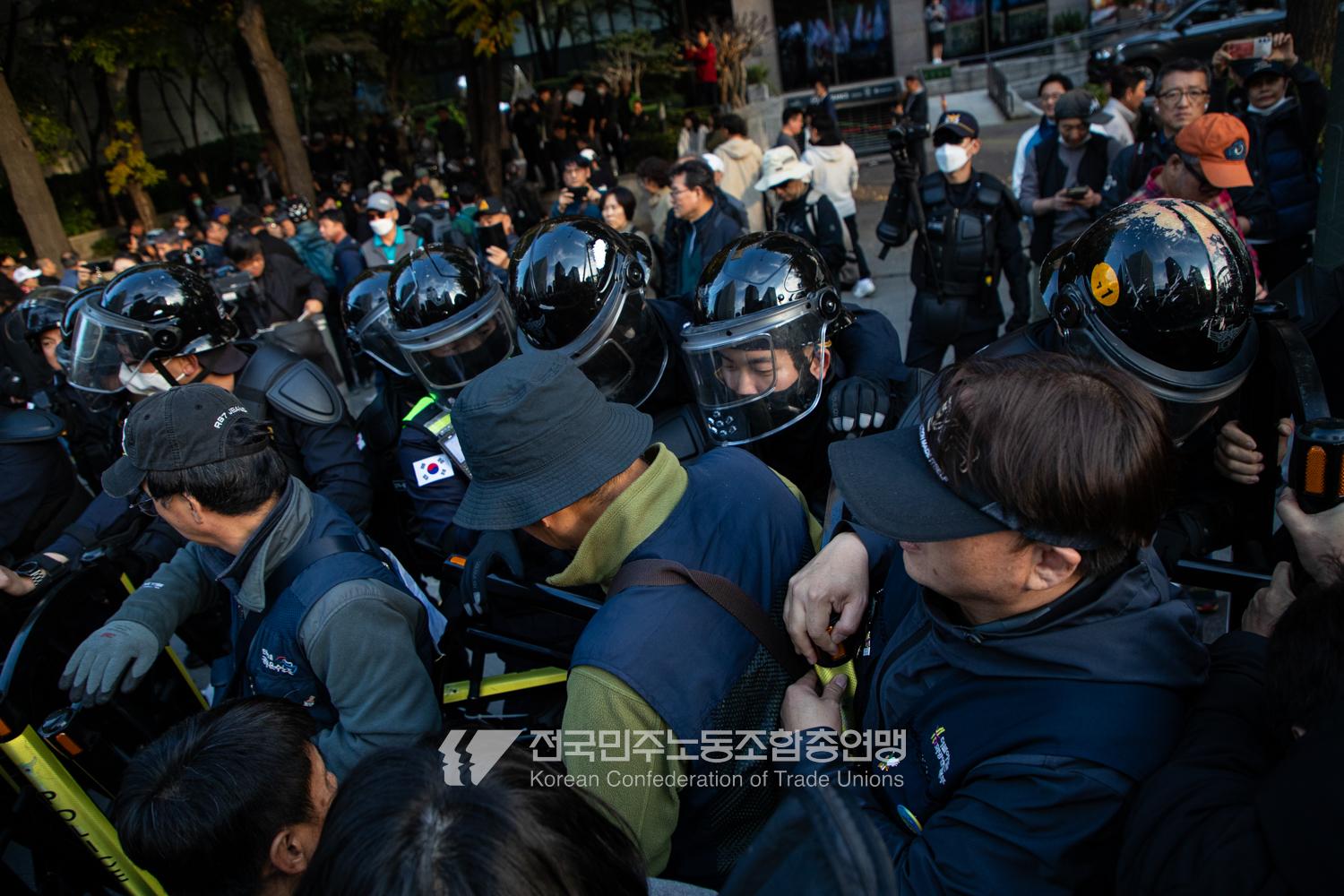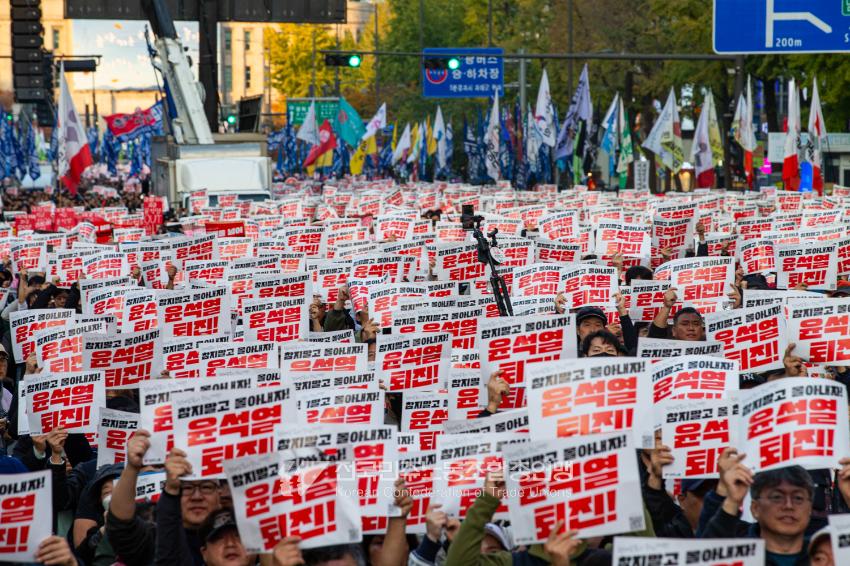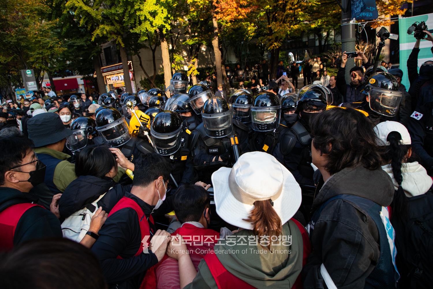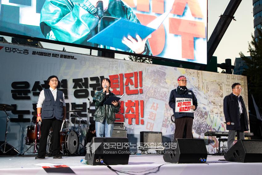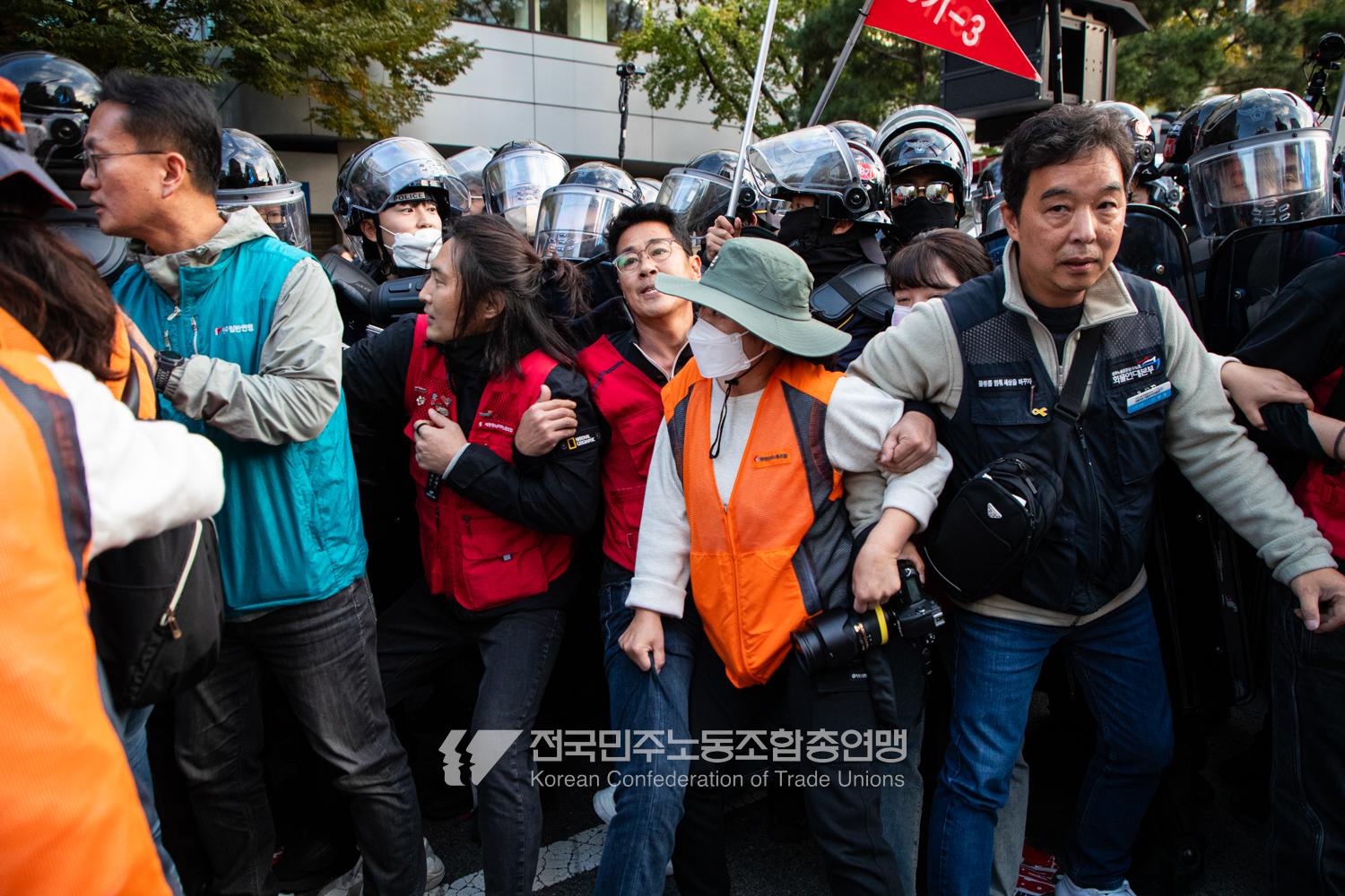 민주노총 10만여 조합원이 2024년 11월9일 서울 세종대로에 모여 윤석열정권 퇴진광장을 열기 위한 전태일열사 정신계승 2024 전국노동자대회를 열었다. 민주노총 16개 산별연맹이 도심 14곳에서 사전대회를 연 뒤 각기 다른 경로로 행진하며 본대회 장소로 모였다. 행진 과정에서 경찰의 과도한 도발과 폭력으로 인해 부상자 및 연행자가 다수 발생하기도 했다.