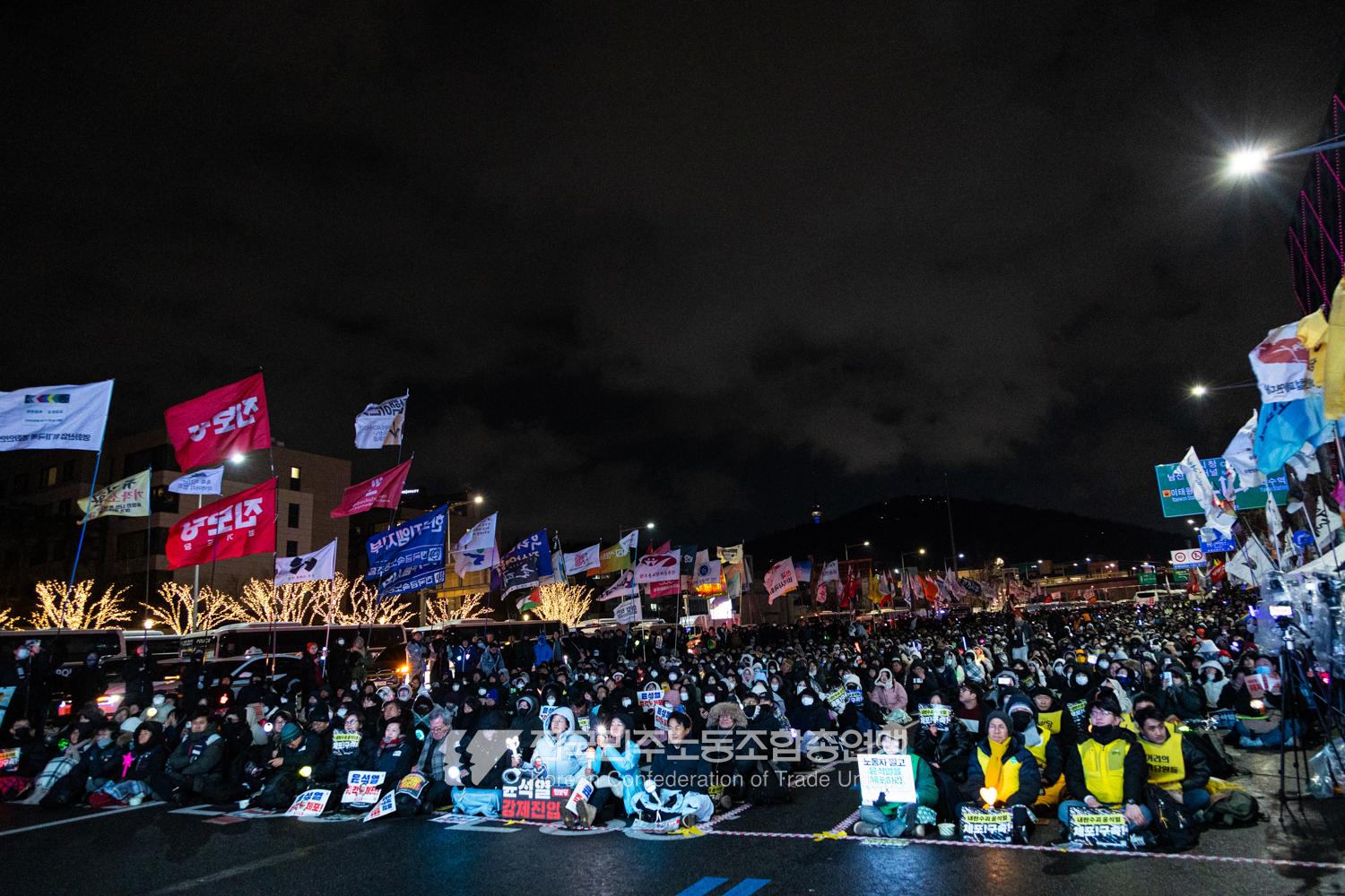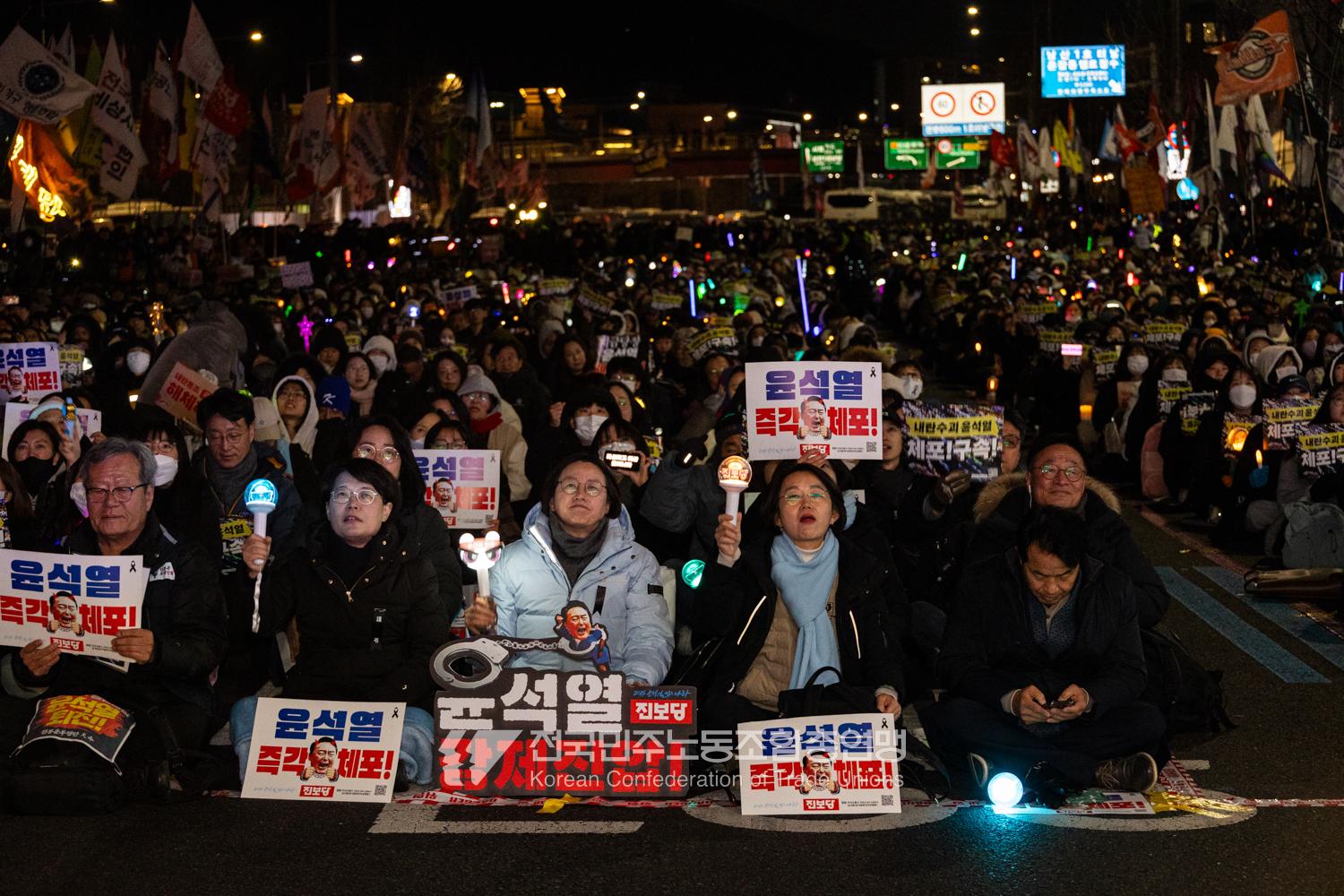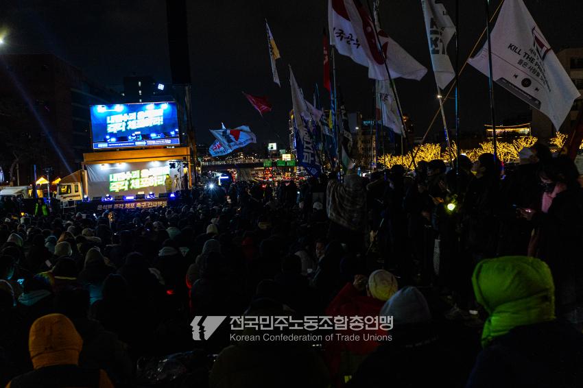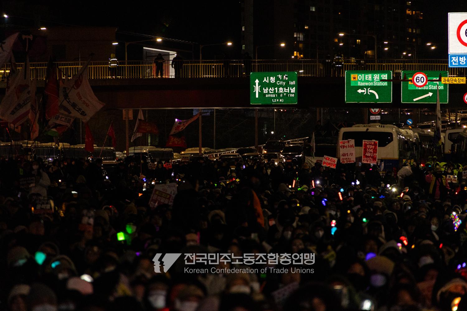 윤석열즉각퇴진・사회대개혁 비상행동은 2025년 1월3일 오후 한강진역 인근에서 집회를 마친 뒤 민주노총이 밤샘투쟁을 이어가는 한남대로로 향했다. 제2의 남태령이 된 한남동은 민주노총 조합원들과 SNS에서 소식을 접하고 속속 모여든 시민들로 가득 메워졌다. 윤석열 체포영장 집행 첫 시도가 불발된 데 분노한 시민들이 함께 자리를 지켰다.
