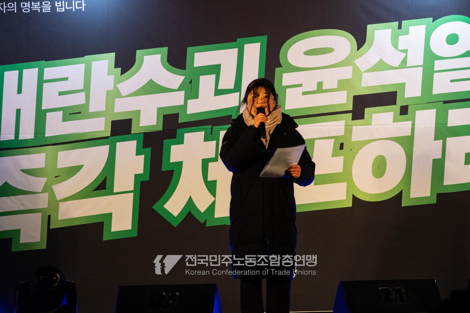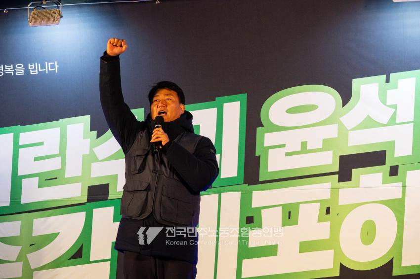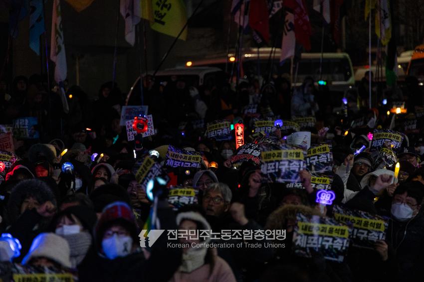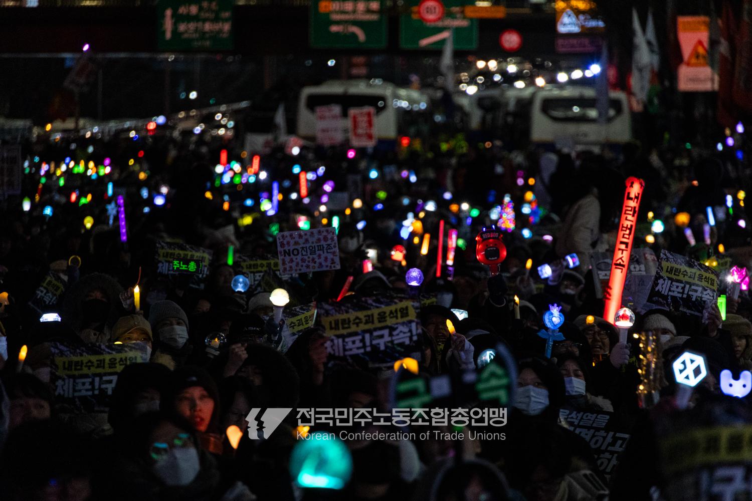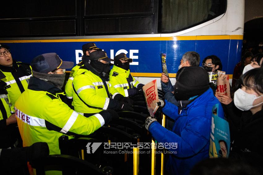 윤석열즉각퇴진・사회대개혁 비상행동은 2025년 1월3일 오후 한강진역 인근에서 집회를 마친 뒤 민주노총이 밤샘투쟁을 이어가는 한남대로로 향했다. 제2의 남태령이 된 한남동은 민주노총 조합원들과 SNS에서 소식을 접하고 속속 모여든 시민들로 가득 메워졌다. 윤석열 체포영장 집행 첫 시도가 불발된 데 분노한 시민들이 함께 자리를 지켰다.
