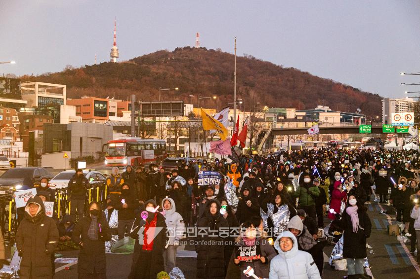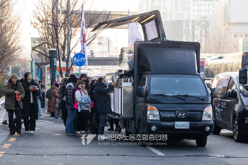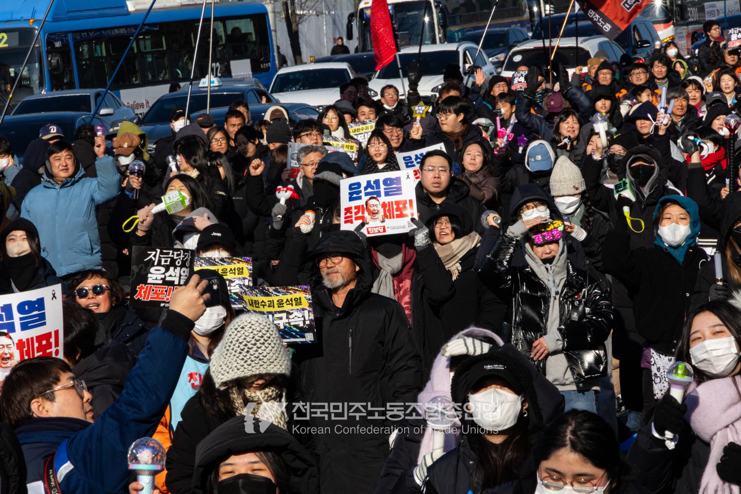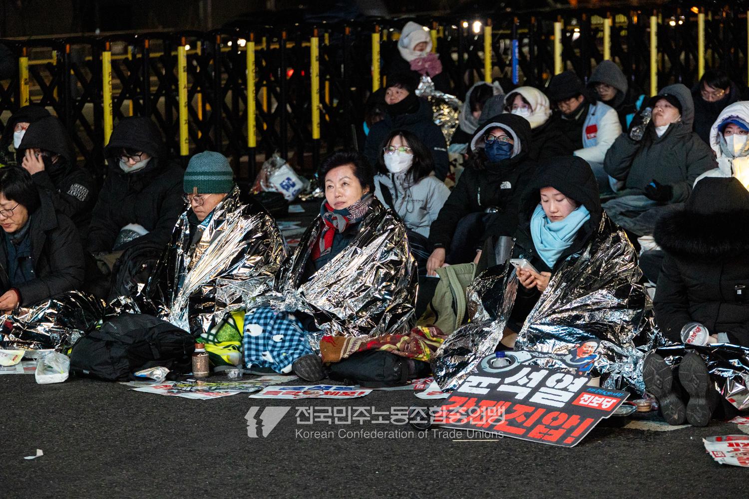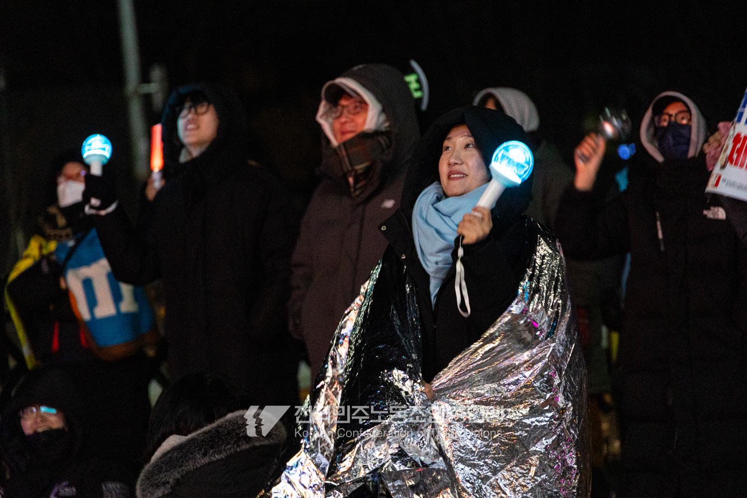 공수처가 윤석열 체포에 실패하고 돌아선 상황에서 민주노총은 치열한 체포・구속 투쟁에 돌입했다. “식민지배 철폐에 나섰던 독립군의 심정으로, 독재 멈추기에 나섰던 시민군의 심정”으로 투쟁을 결의하고 집회신고가 된 한남대로에 눌러 앉았다. SNS에서 소식을 들은 시민들이 ‘남태령 대첩을 이어가겠다’ ‘남태령에서 진 빚을 갚겠다’라며 한남대로에 모여들었다. 또 전국 각지에서 민주노총과 시민들을 후원하기 위한 각종 음식과 물품이 한남대로에 도착했다.