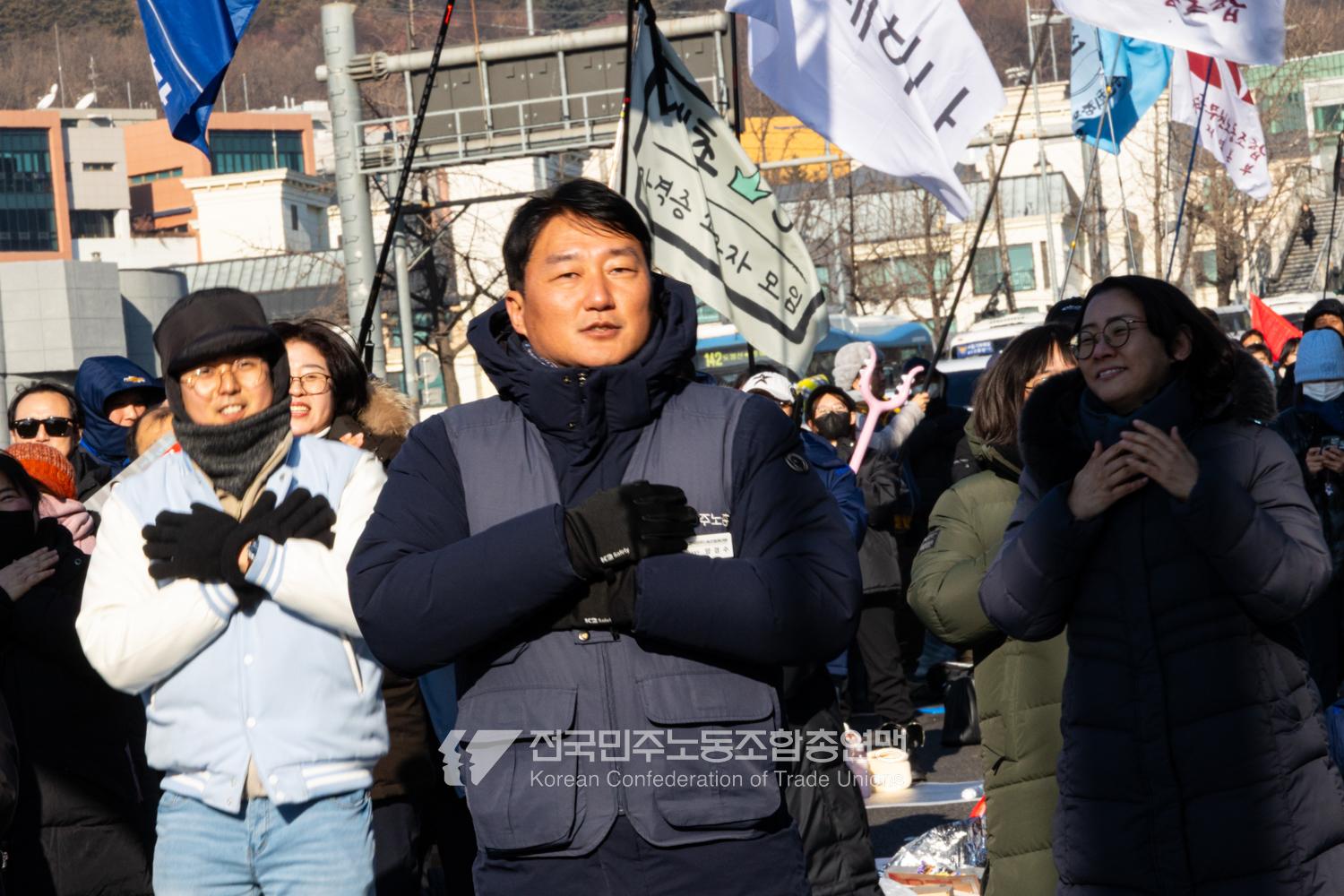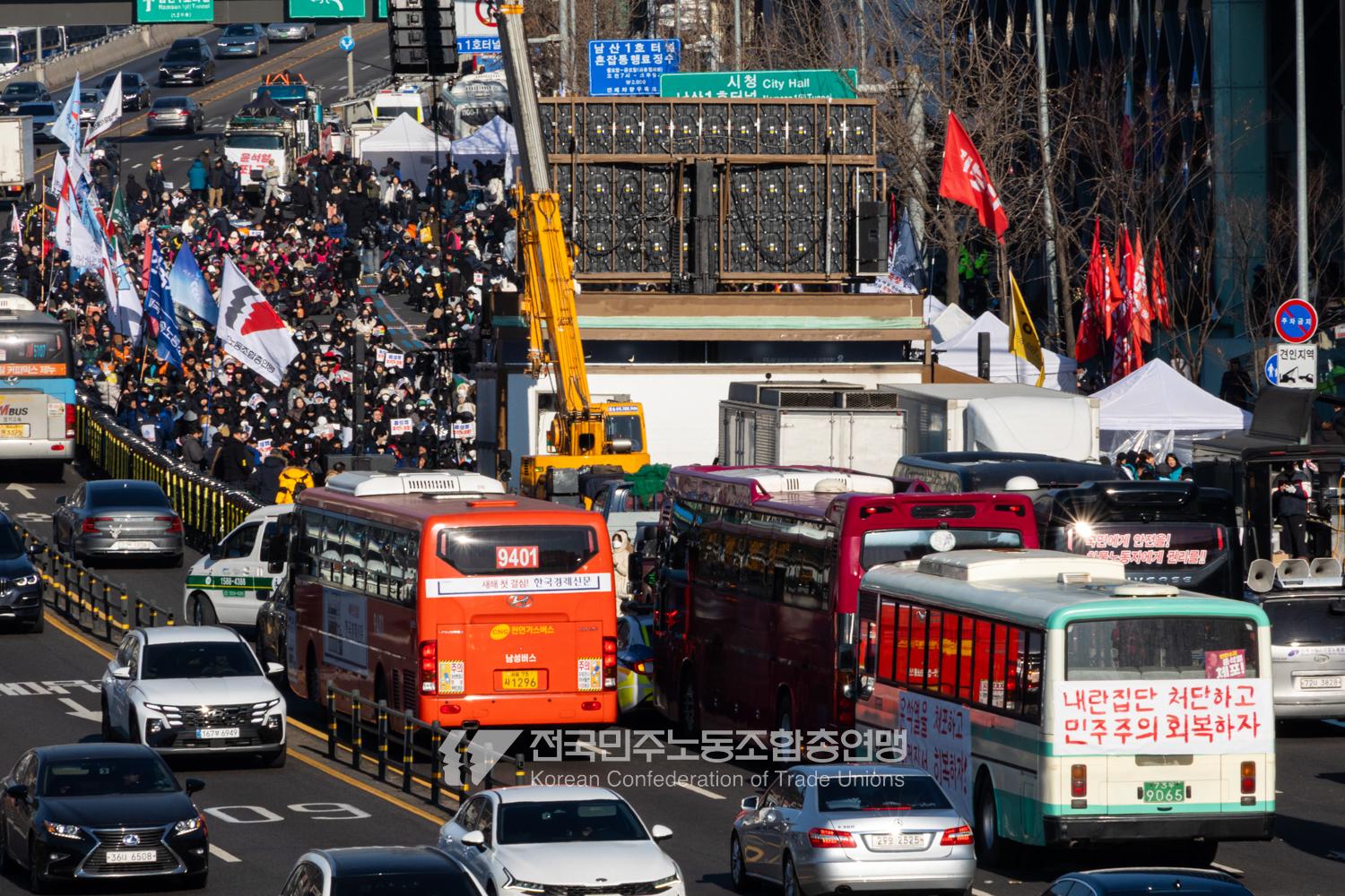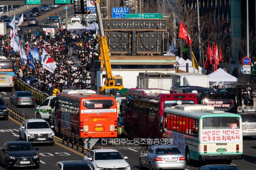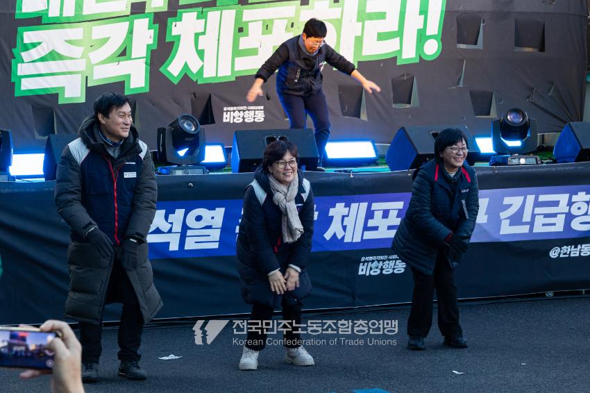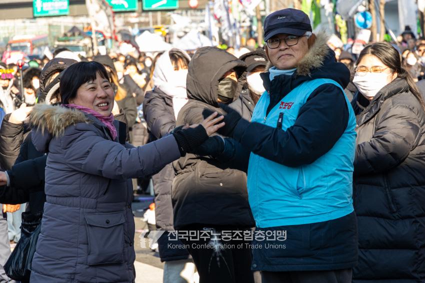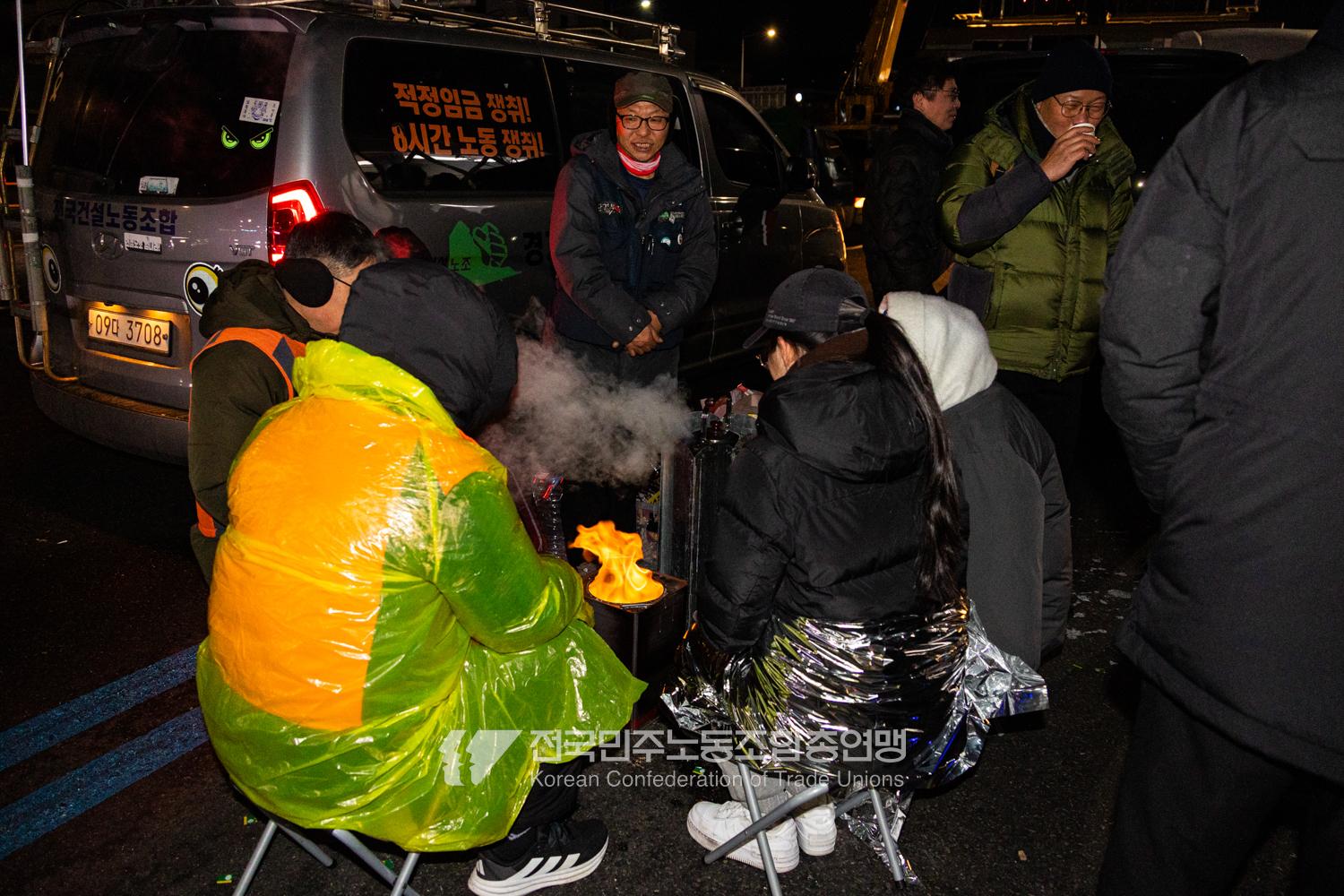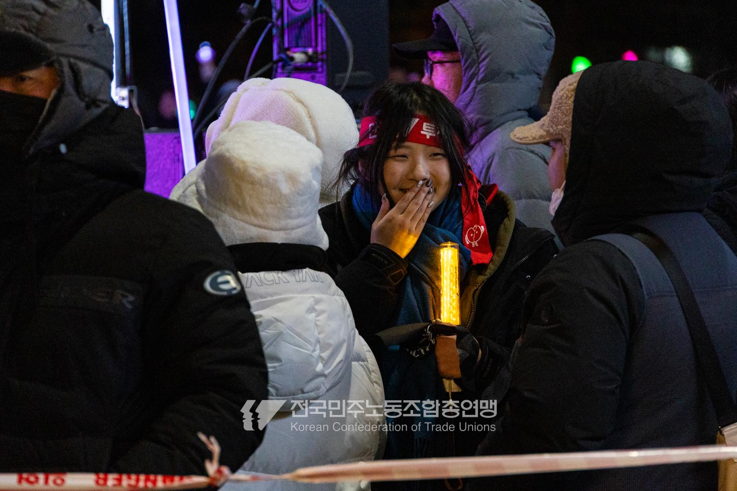 공수처가 윤석열 체포에 실패하고 돌아선 상황에서 민주노총은 치열한 체포・구속 투쟁에 돌입했다. “식민지배 철폐에 나섰던 독립군의 심정으로, 독재 멈추기에 나섰던 시민군의 심정”으로 투쟁을 결의하고 집회신고가 된 한남대로에 눌러 앉았다. SNS에서 소식을 들은 시민들이 ‘남태령 대첩을 이어가겠다’ ‘남태령에서 진 빚을 갚겠다’라며 한남대로에 모여들었다. 또 전국 각지에서 민주노총과 시민들을 후원하기 위한 각종 음식과 물품이 한남대로에 도착했다.