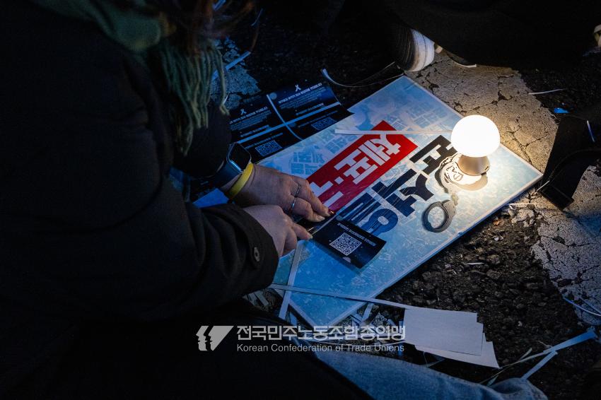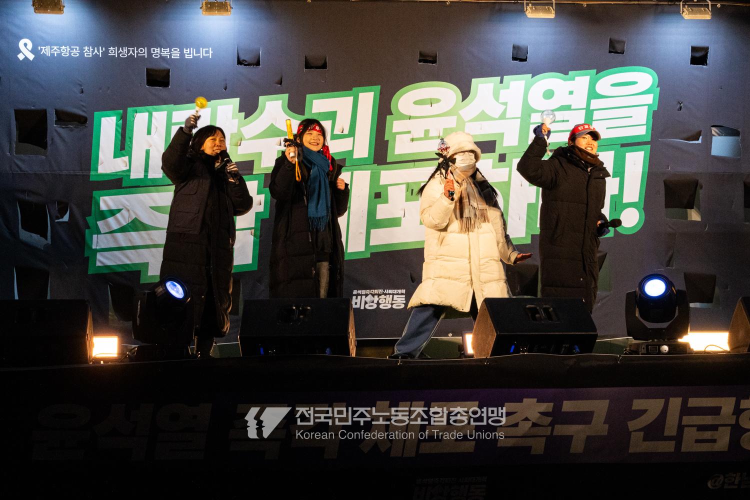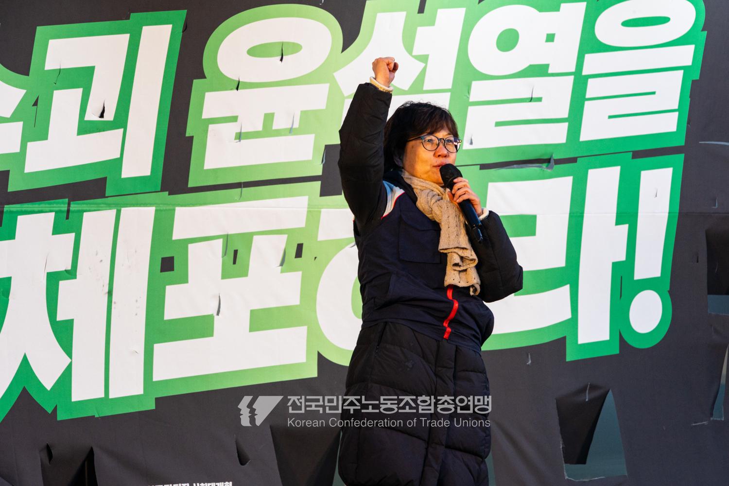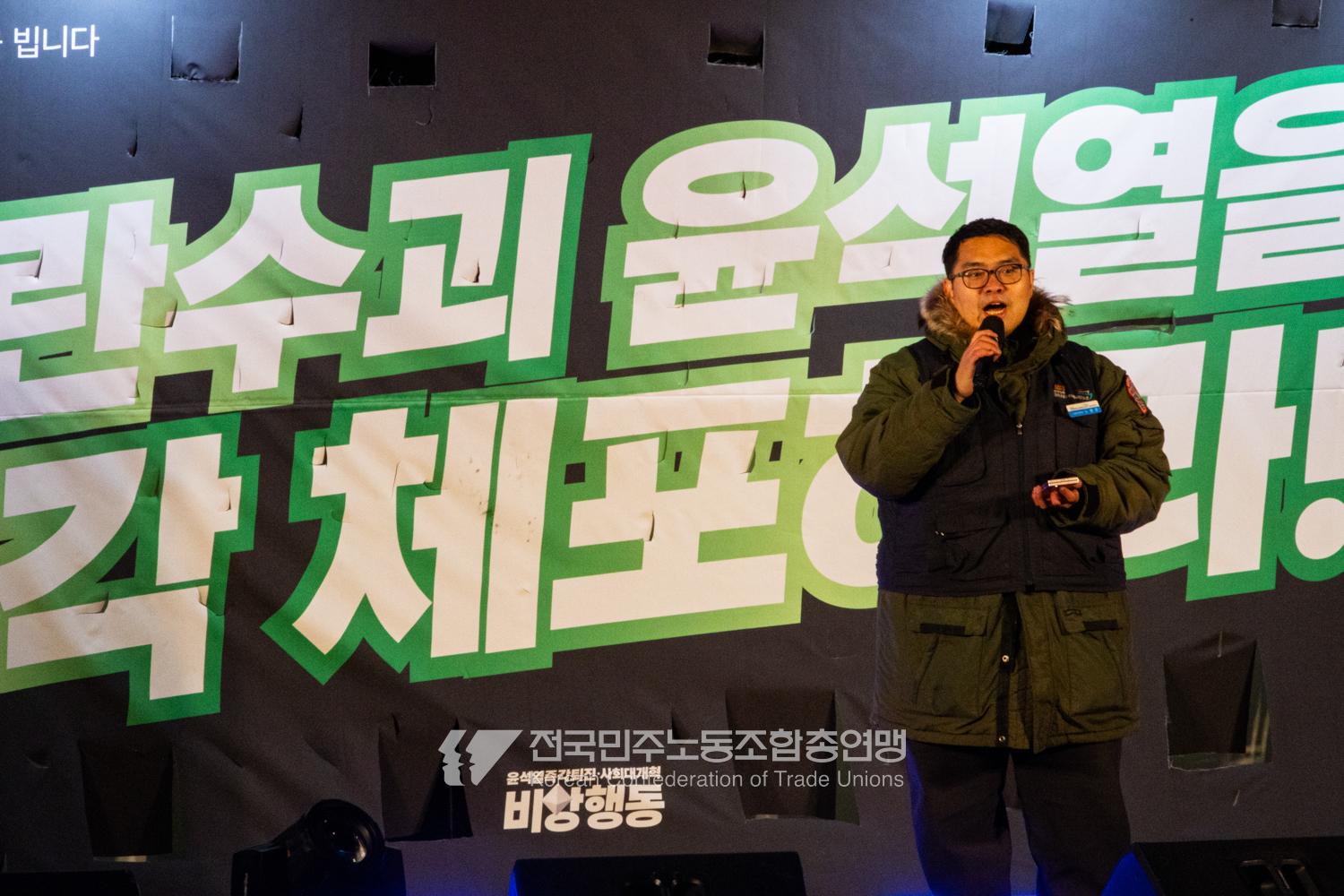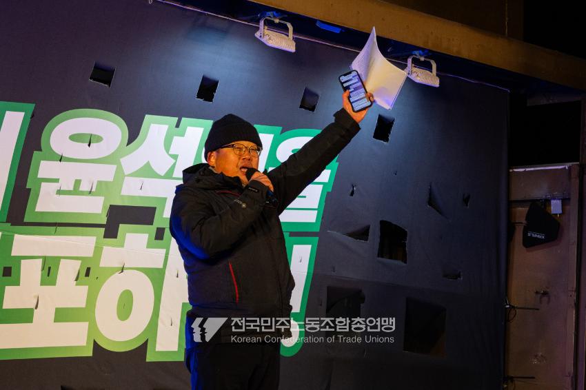 공수처가 윤석열 체포에 실패하고 돌아선 상황에서 민주노총은 치열한 체포・구속 투쟁에 돌입했다. “식민지배 철폐에 나섰던 독립군의 심정으로, 독재 멈추기에 나섰던 시민군의 심정”으로 투쟁을 결의하고 집회신고가 된 한남대로에 눌러 앉았다. SNS에서 소식을 들은 시민들이 ‘남태령 대첩을 이어가겠다’ ‘남태령에서 진 빚을 갚겠다’라며 한남대로에 모여들었다. 또 전국 각지에서 민주노총과 시민들을 후원하기 위한 각종 음식과 물품이 한남대로에 도착했다.