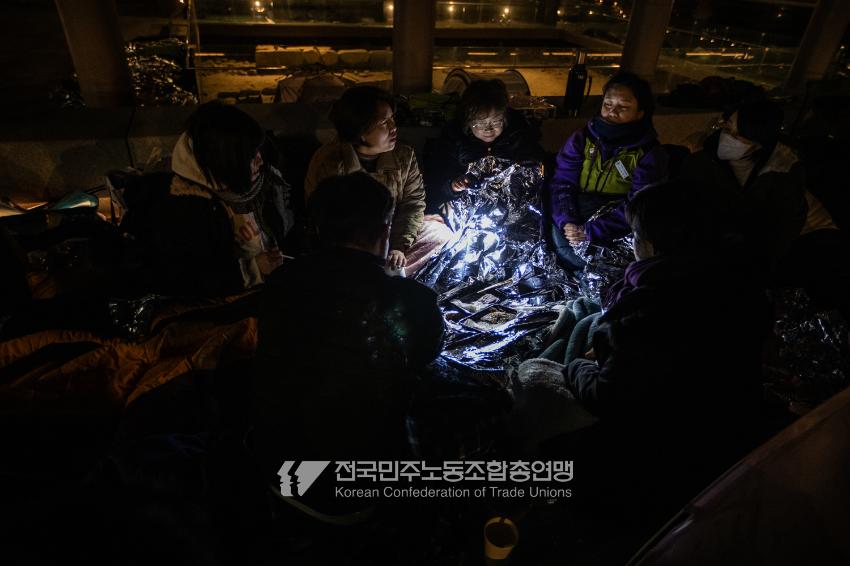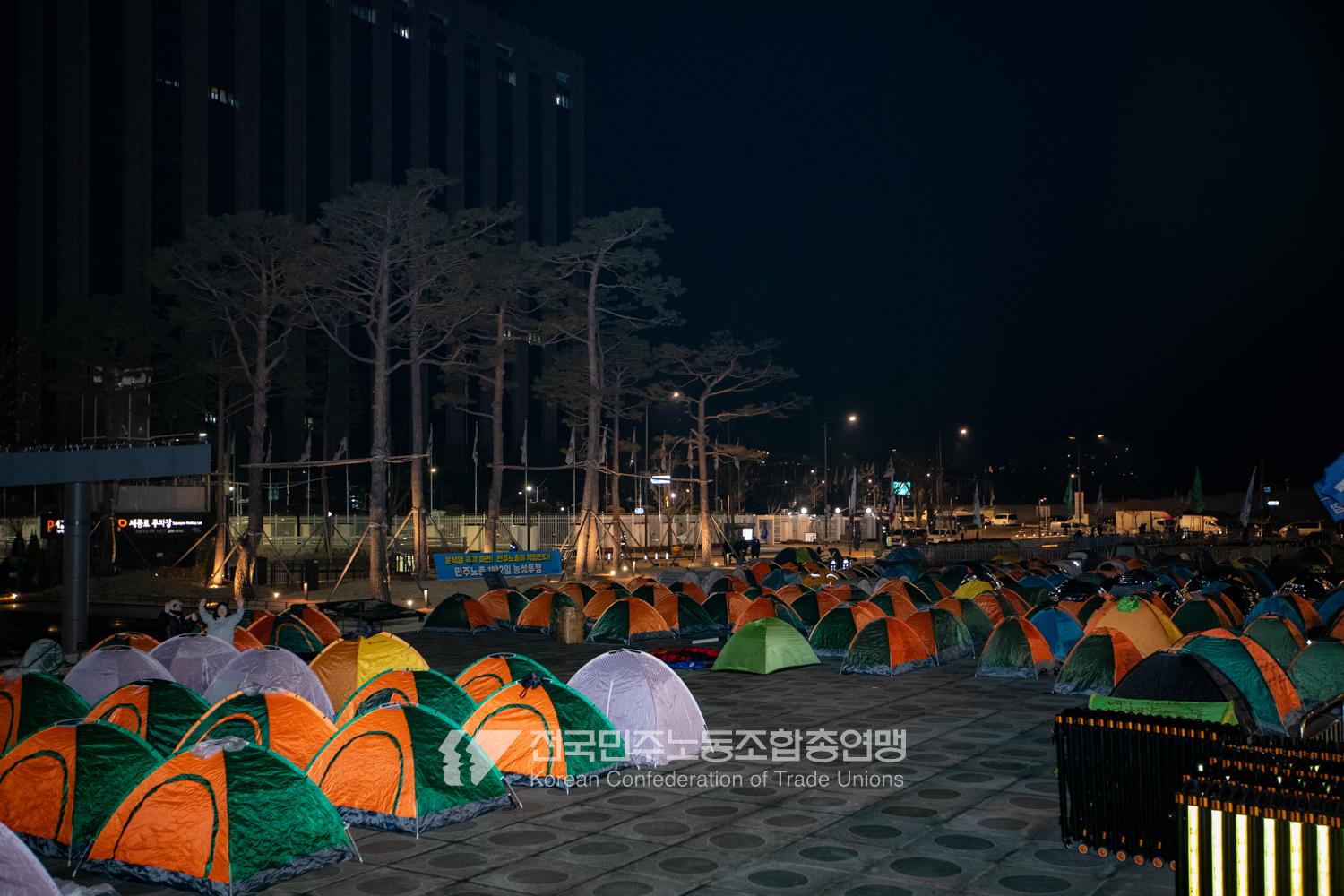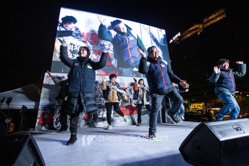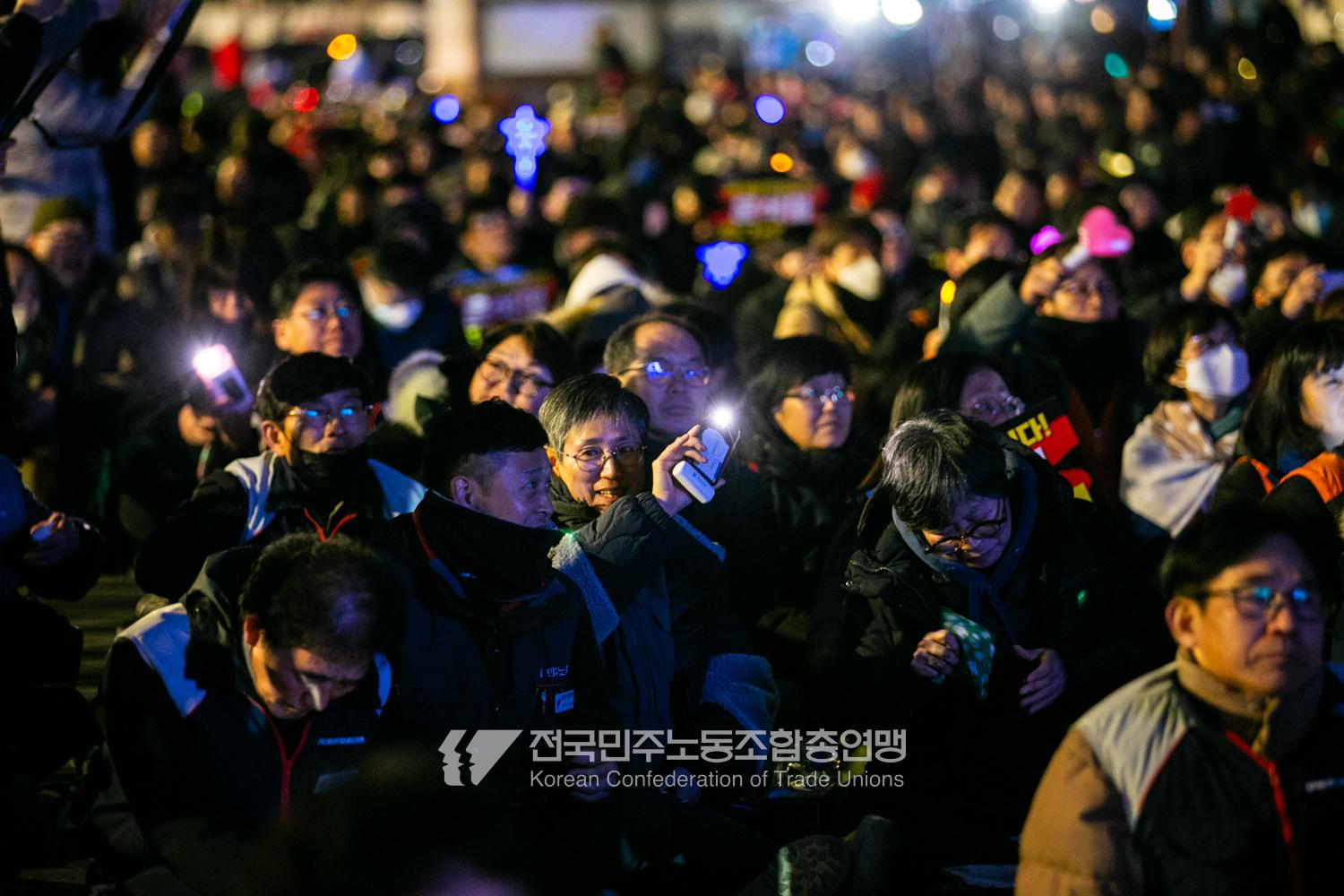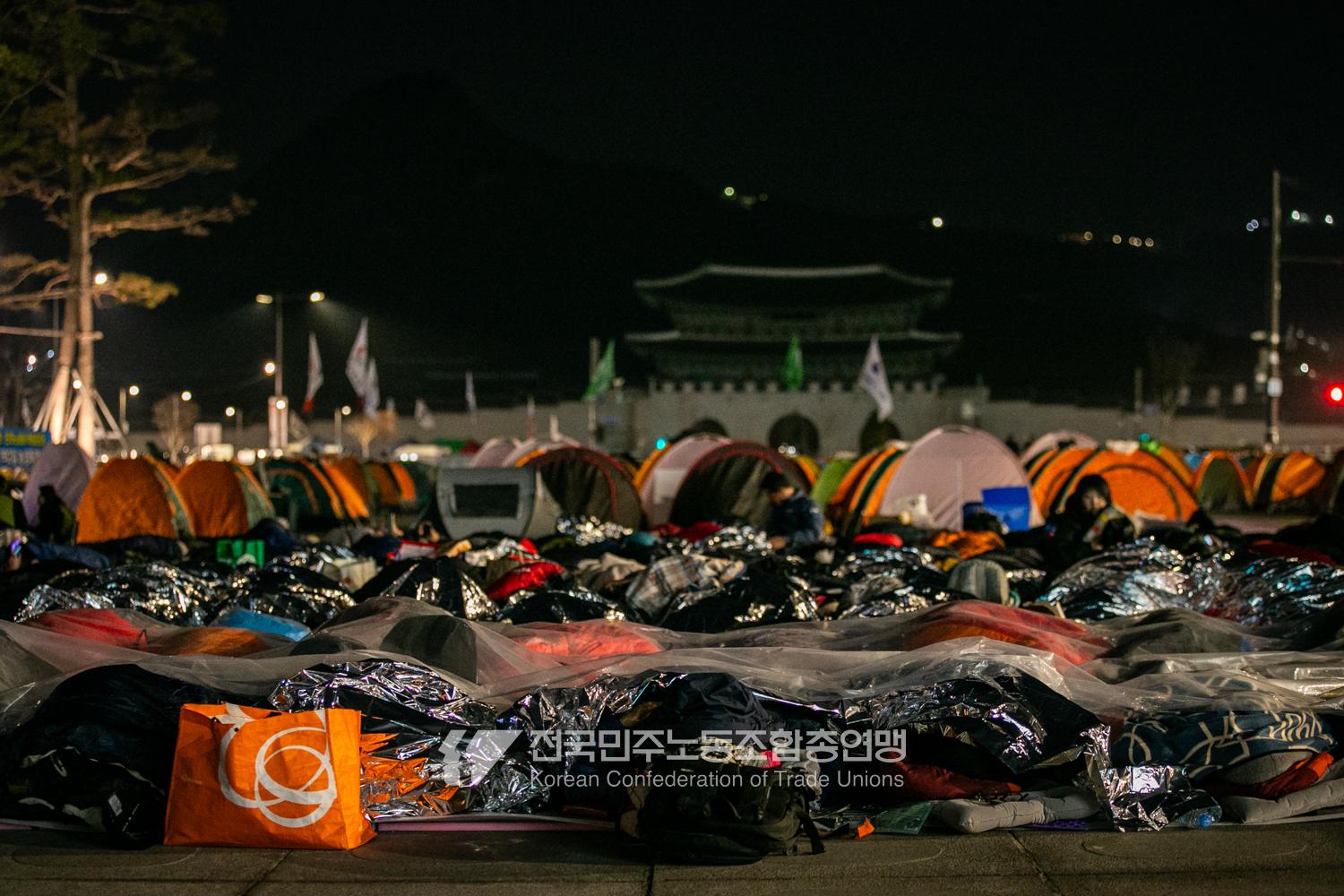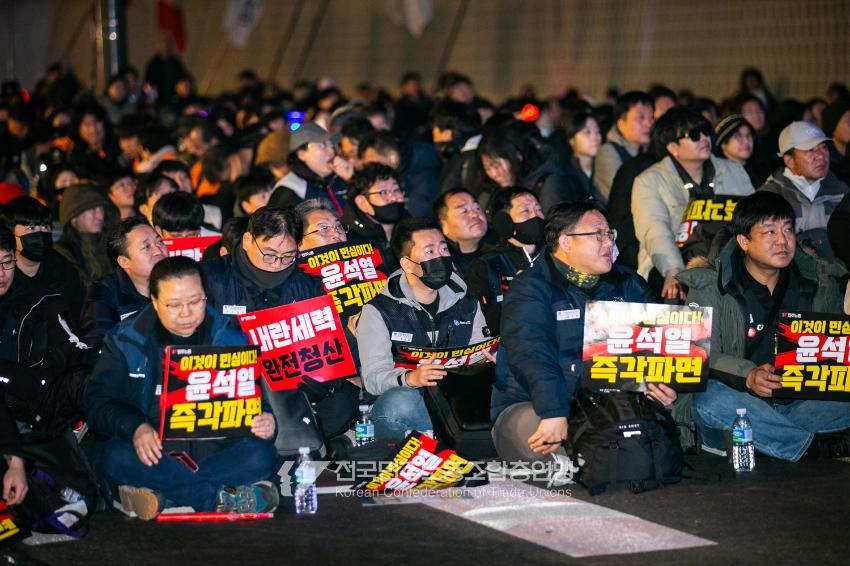 민주노총 전국단위사업장 대표자 3천여 명이 2025년 3월11일 서울 광화문에 모여 1박2일 투쟁에 나섰다. 민주노총은 광화문 동십자각 앞에서 연 비상 결의대회를 시작으로 1박2일 농성투쟁에 돌입했다. 대회를 마친 대표자들은 광화문 일대에서 ‘윤석열 즉각 파면을 위해 광장으로 모이자’라는 선전전과 피켓팅을 진행했다. 이후 비상행동이 연 집회를 거쳐 오후 10시부터 민주노총 야간집회를 열고 1박2일 농성에 돌입했다.