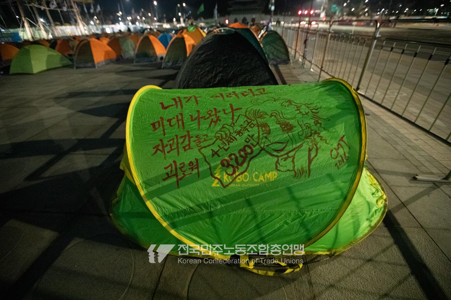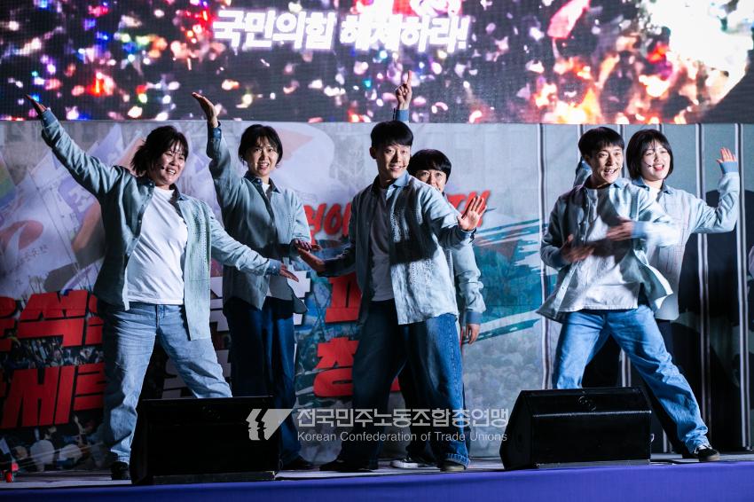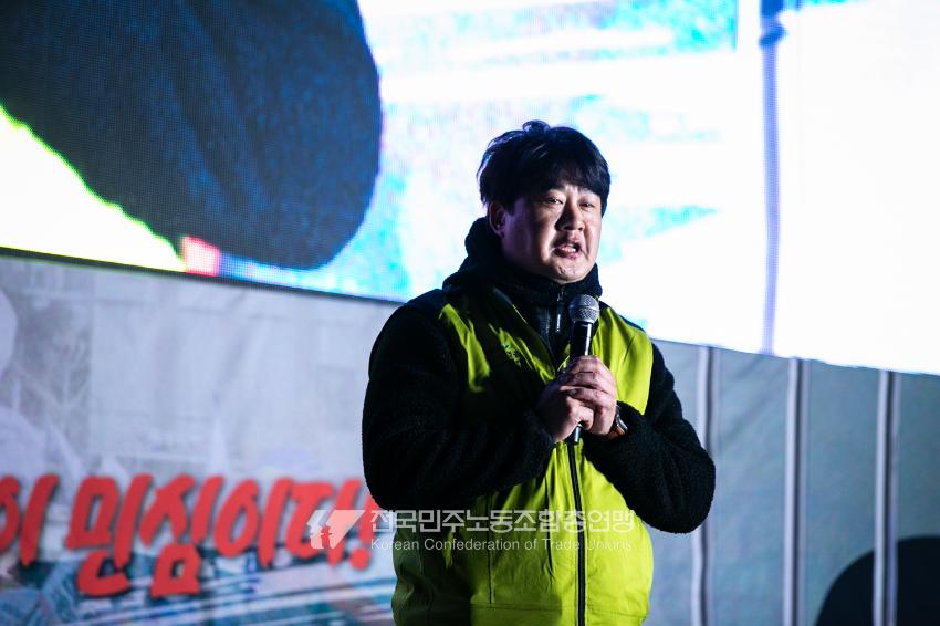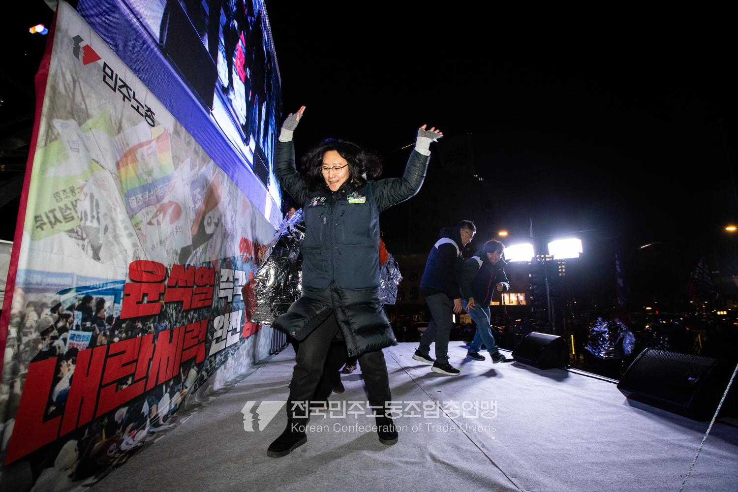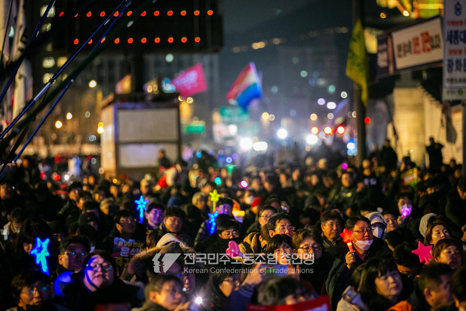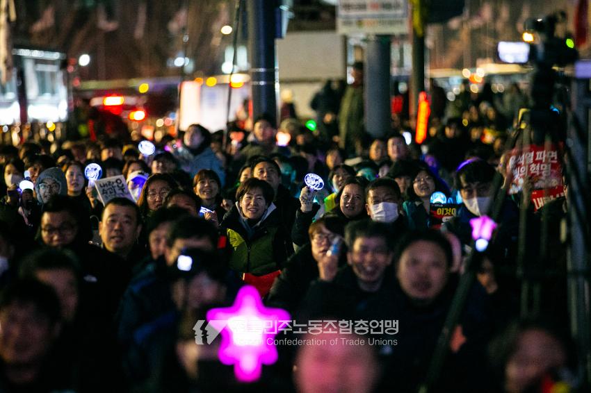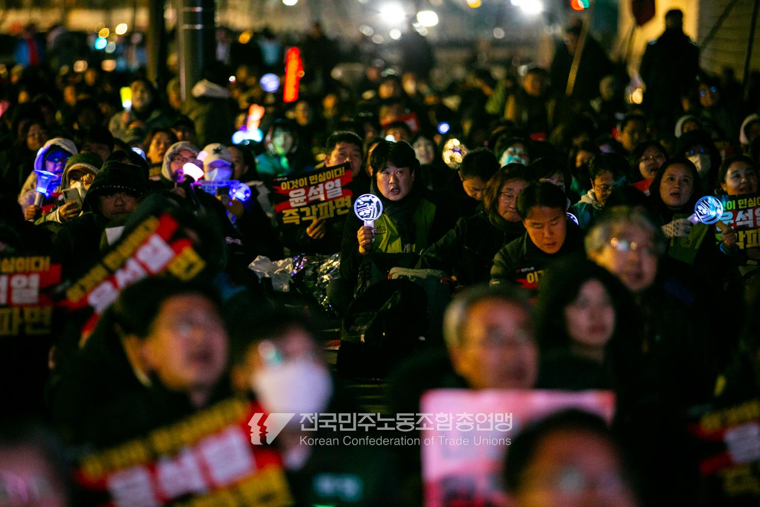민주노총 전국단위사업장 대표자 3천여 명이 2025년 3월11일 서울 광화문에 모여 1박2일 투쟁에 나섰다. 민주노총은 광화문 동십자각 앞에서 연 비상 결의대회를 시작으로 1박2일 농성투쟁에 돌입했다. 대회를 마친 대표자들은 광화문 일대에서 ‘윤석열 즉각 파면을 위해 광장으로 모이자’라는 선전전과 피켓팅을 진행했다. 이후 비상행동이 연 집회를 거쳐 오후 10시부터 민주노총 야간집회를 열고 1박2일 농성에 돌입했다.