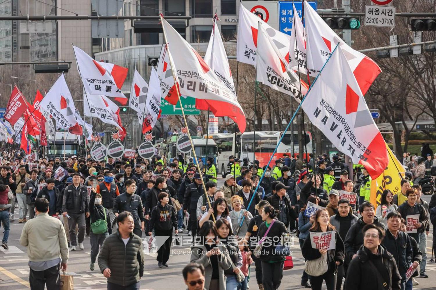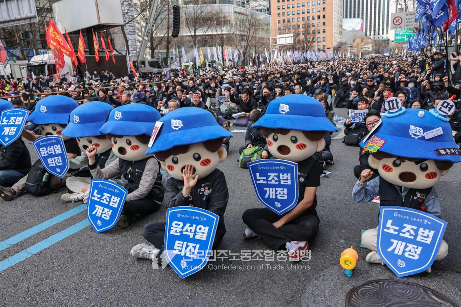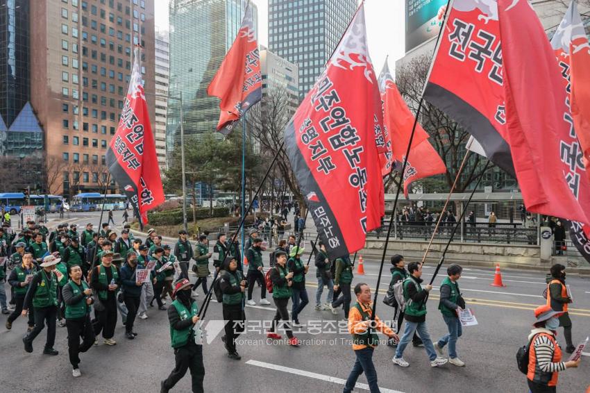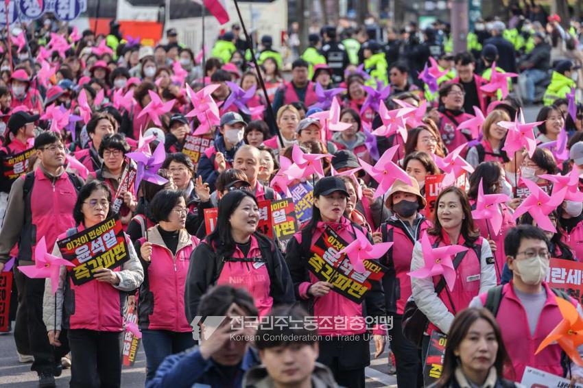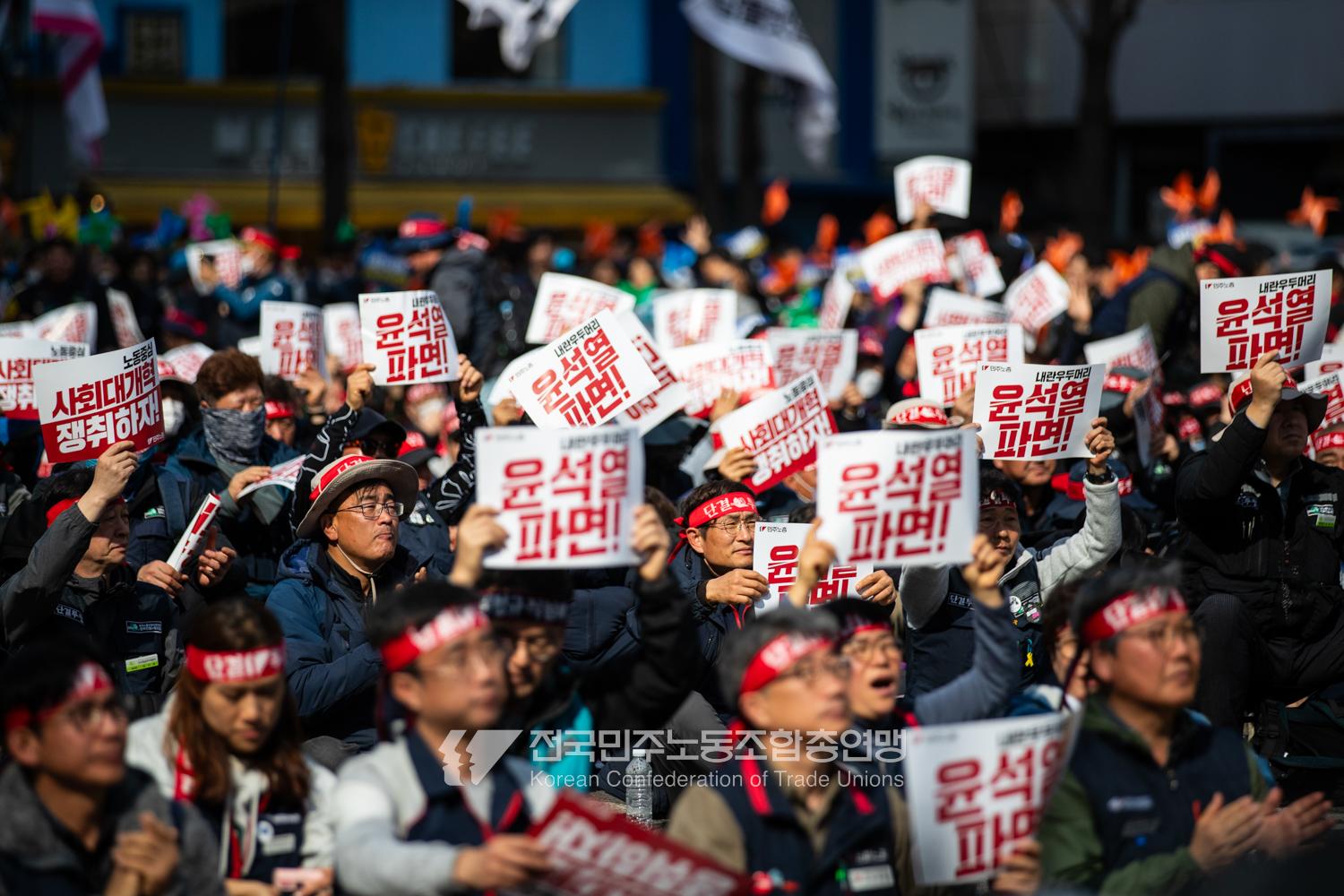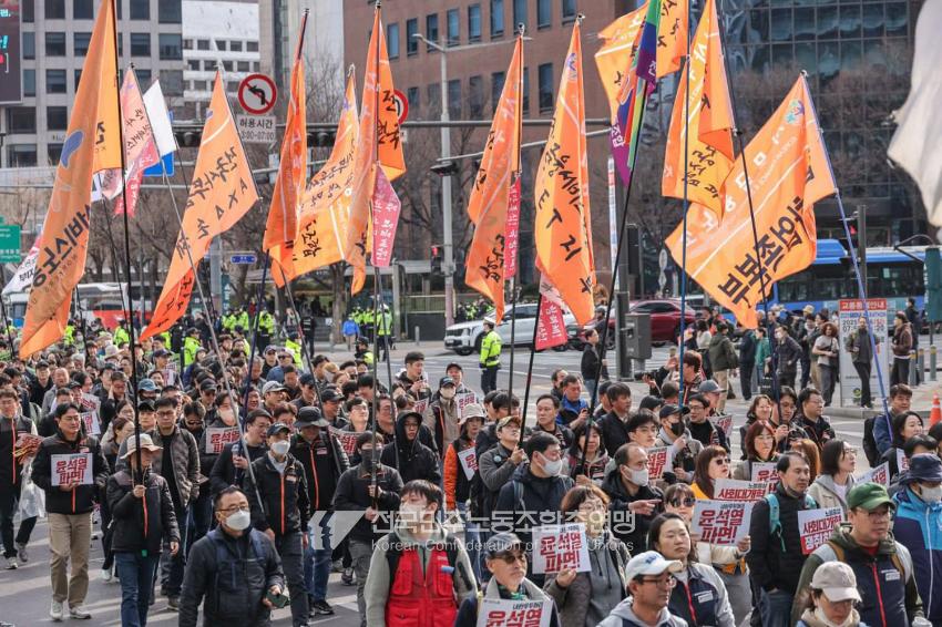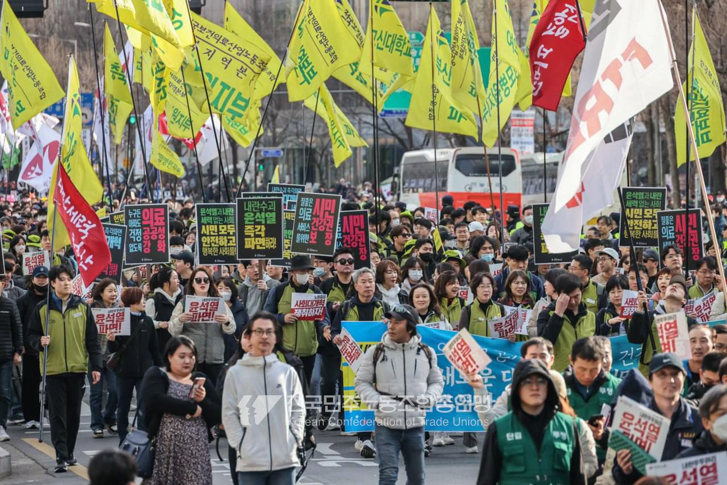 윤석열이 석방된 지 일주일이 지나도록 헌법재판소의 파면 선고가 나지 않아 민주주의의 위기가 장기화된다는 우려가 나오는 가운데, 민주노총 조합원 3만여 명이 2025년 3월15일 오후 서울 중구 을지로입구에 모여 전국노동자대회를 열고 윤석열 파면과 내란 척결에 모든 것을 걸자고 결의했다. 건설산업연맹과 공공운수노조, 금속노조, 서비스연맹은 전국노동자대회에 앞서 사전대회를 열고 을지로입구로 집결했다. 대회를 마친 조합원들은 동십자각까지 행진하여 오후 5시에 열린 비상행동 집회에 참가했다.