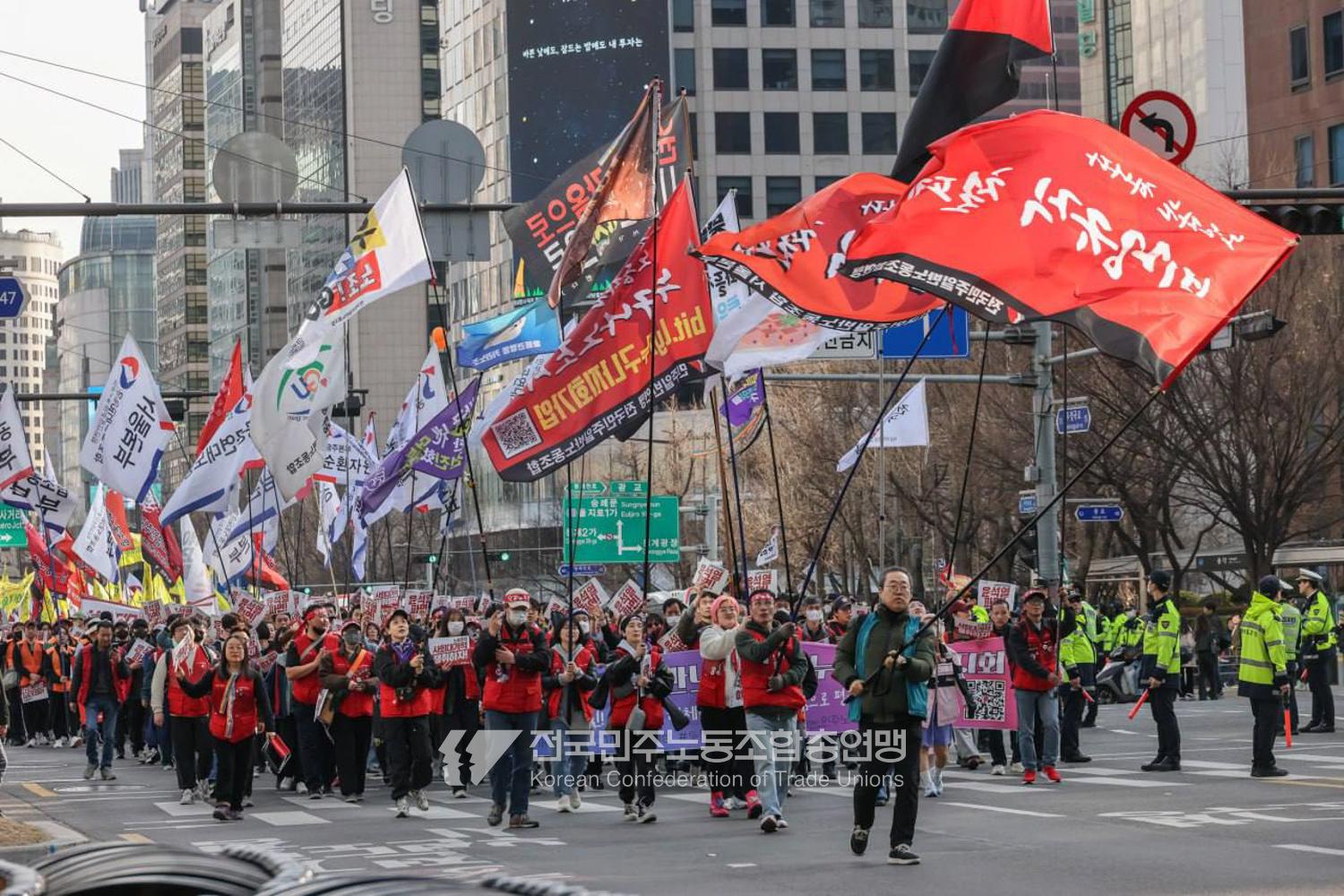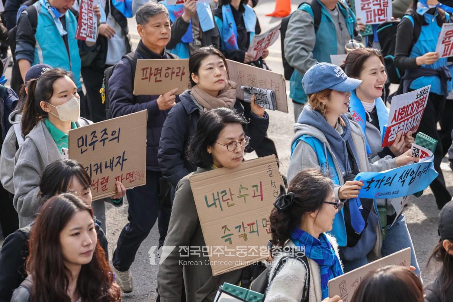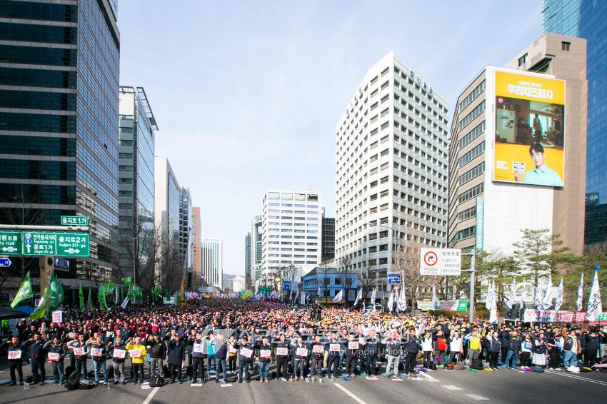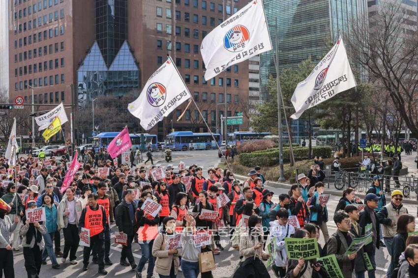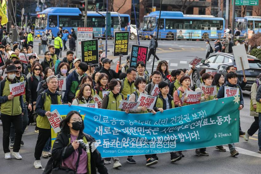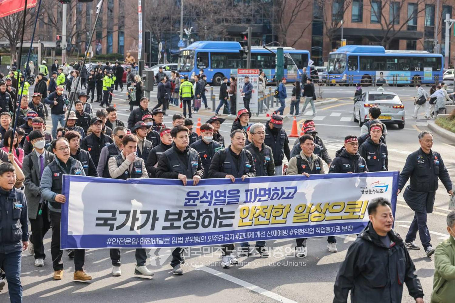 윤석열이 석방된 지 일주일이 지나도록 헌법재판소의 파면 선고가 나지 않아 민주주의의 위기가 장기화된다는 우려가 나오는 가운데, 민주노총 조합원 3만여 명이 2025년 3월15일 오후 서울 중구 을지로입구에 모여 전국노동자대회를 열고 윤석열 파면과 내란 척결에 모든 것을 걸자고 결의했다. 건설산업연맹과 공공운수노조, 금속노조, 서비스연맹은 전국노동자대회에 앞서 사전대회를 열고 을지로입구로 집결했다. 대회를 마친 조합원들은 동십자각까지 행진하여 오후 5시에 열린 비상행동 집회에 참가했다.