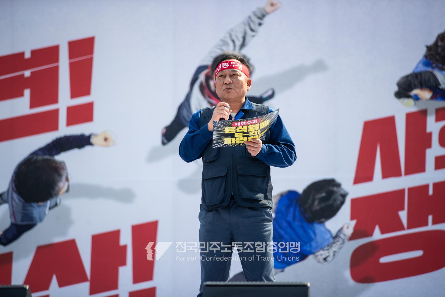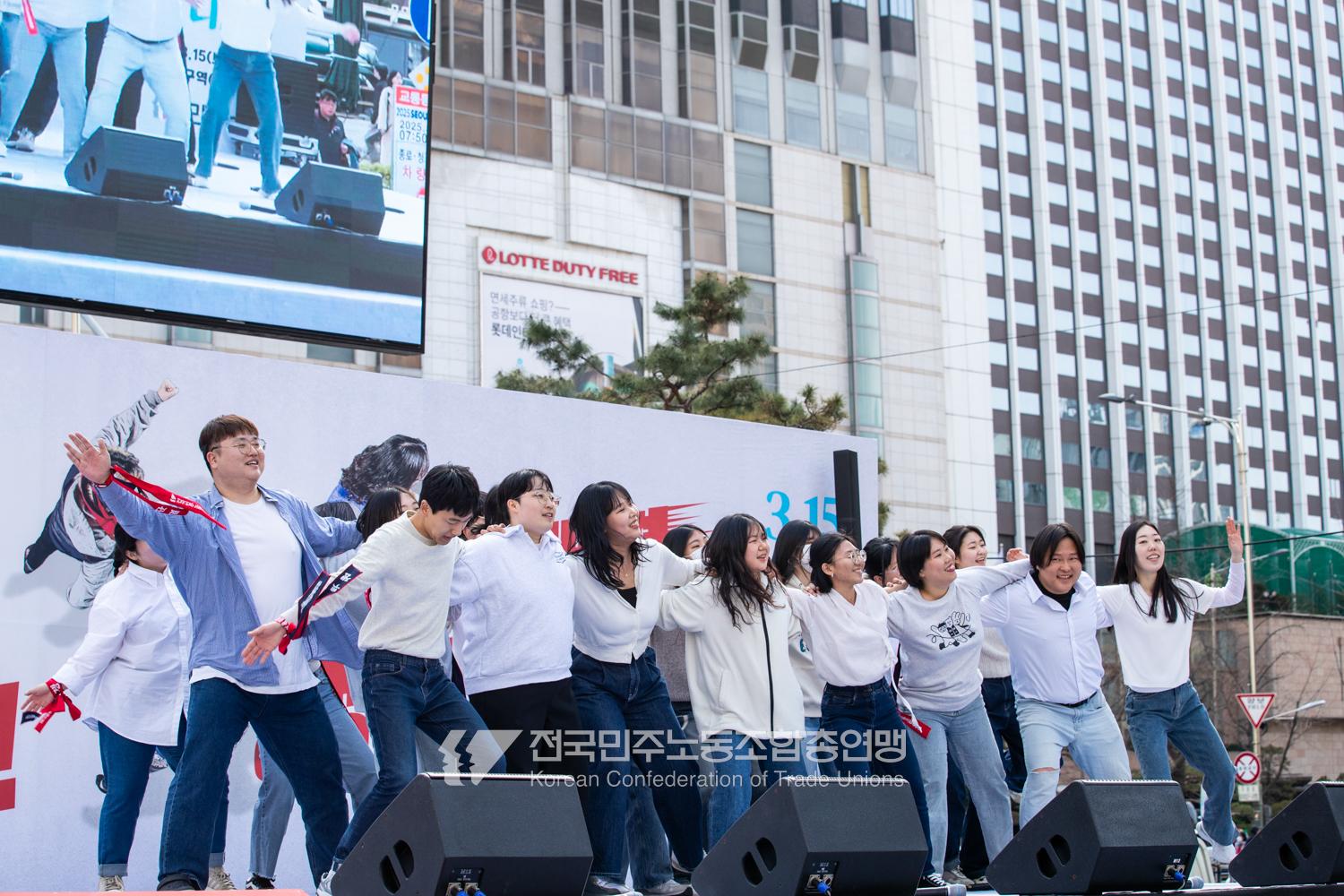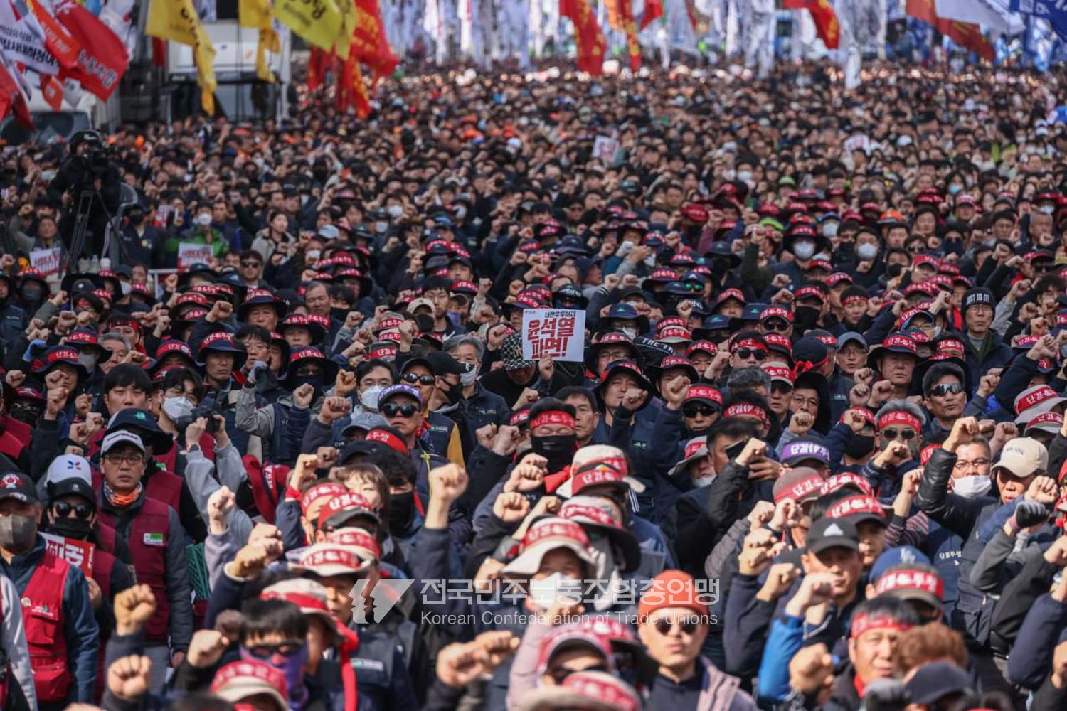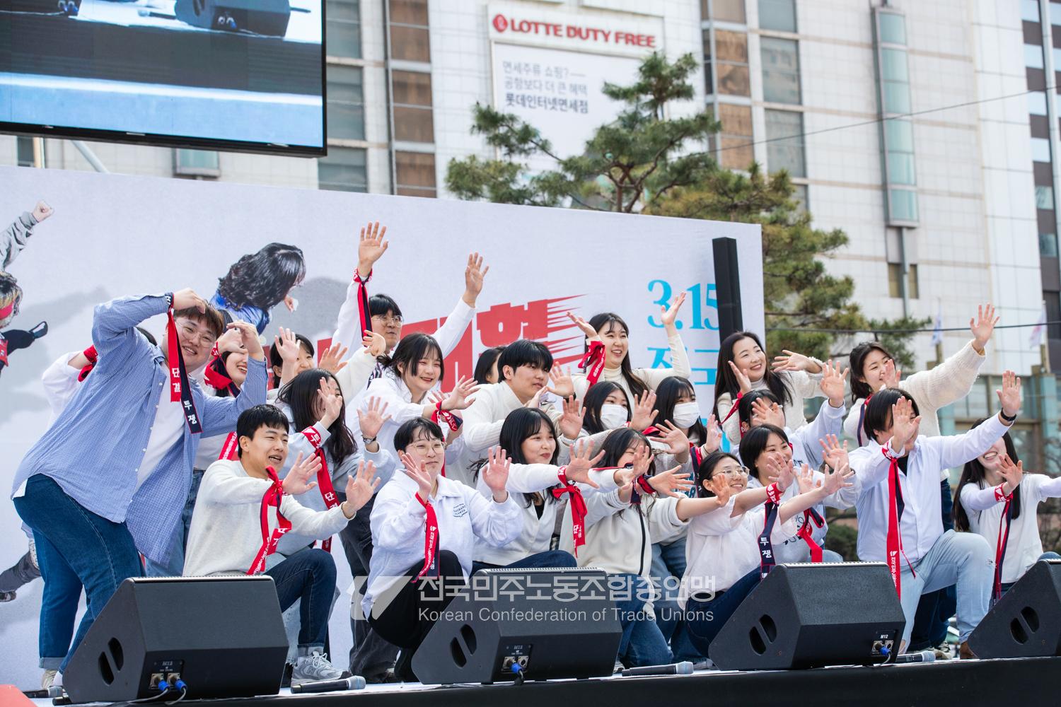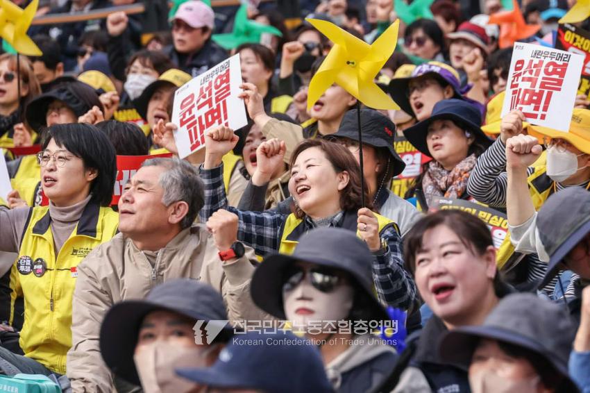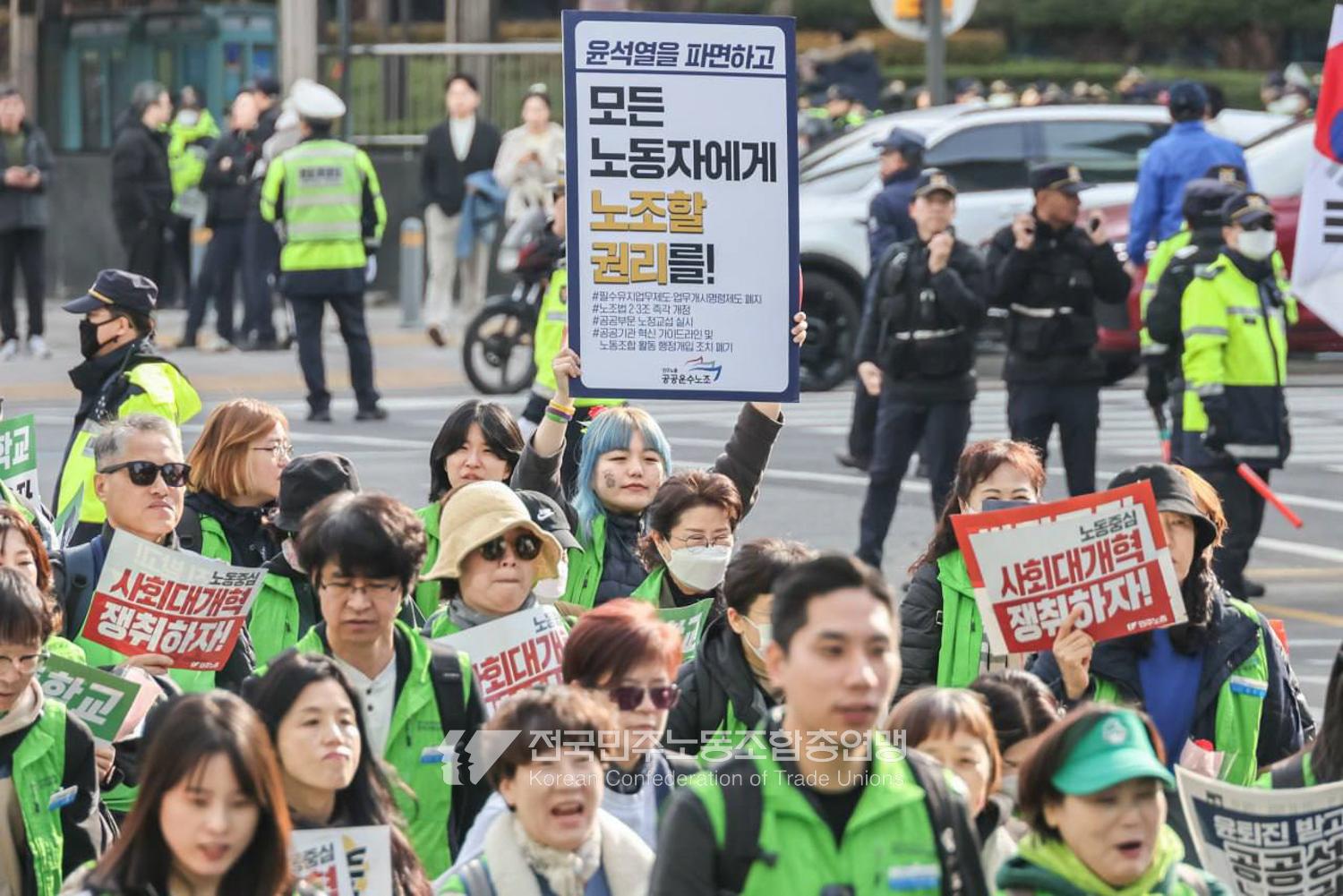 윤석열이 석방된 지 일주일이 지나도록 헌법재판소의 파면 선고가 나지 않아 민주주의의 위기가 장기화된다는 우려가 나오는 가운데, 민주노총 조합원 3만여 명이 2025년 3월15일 오후 서울 중구 을지로입구에 모여 전국노동자대회를 열고 윤석열 파면과 내란 척결에 모든 것을 걸자고 결의했다. 건설산업연맹과 공공운수노조, 금속노조, 서비스연맹은 전국노동자대회에 앞서 사전대회를 열고 을지로입구로 집결했다. 대회를 마친 조합원들은 동십자각까지 행진하여 오후 5시에 열린 비상행동 집회에 참가했다.