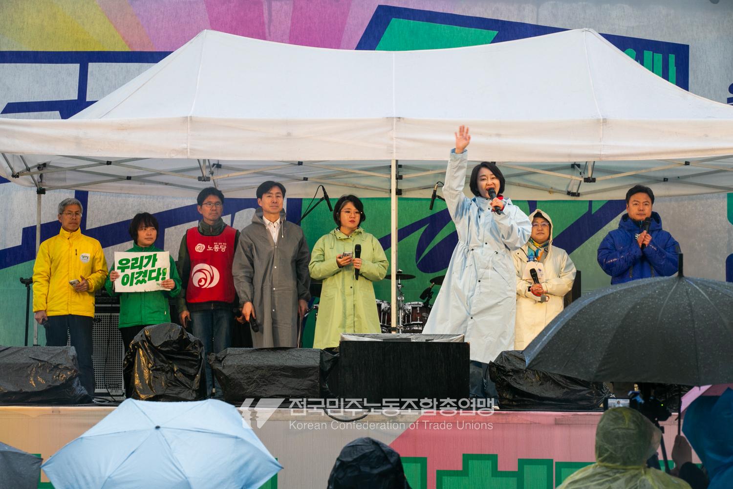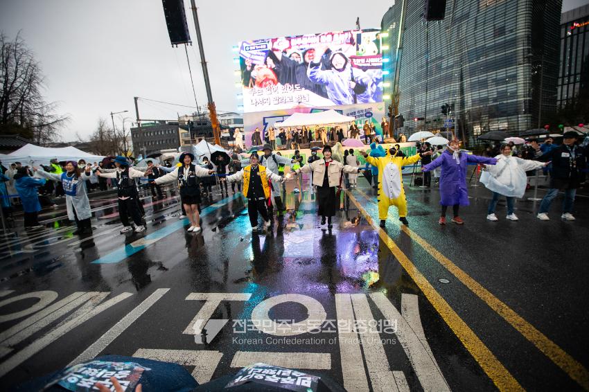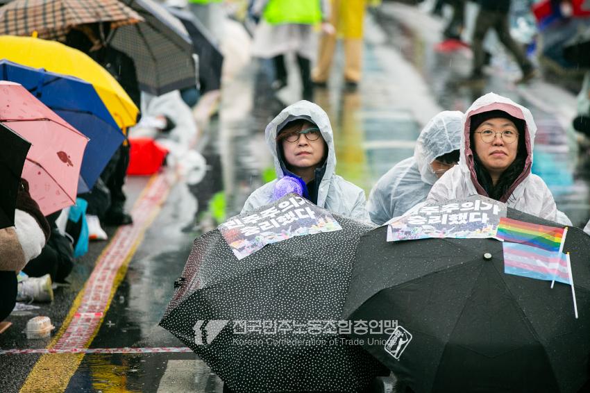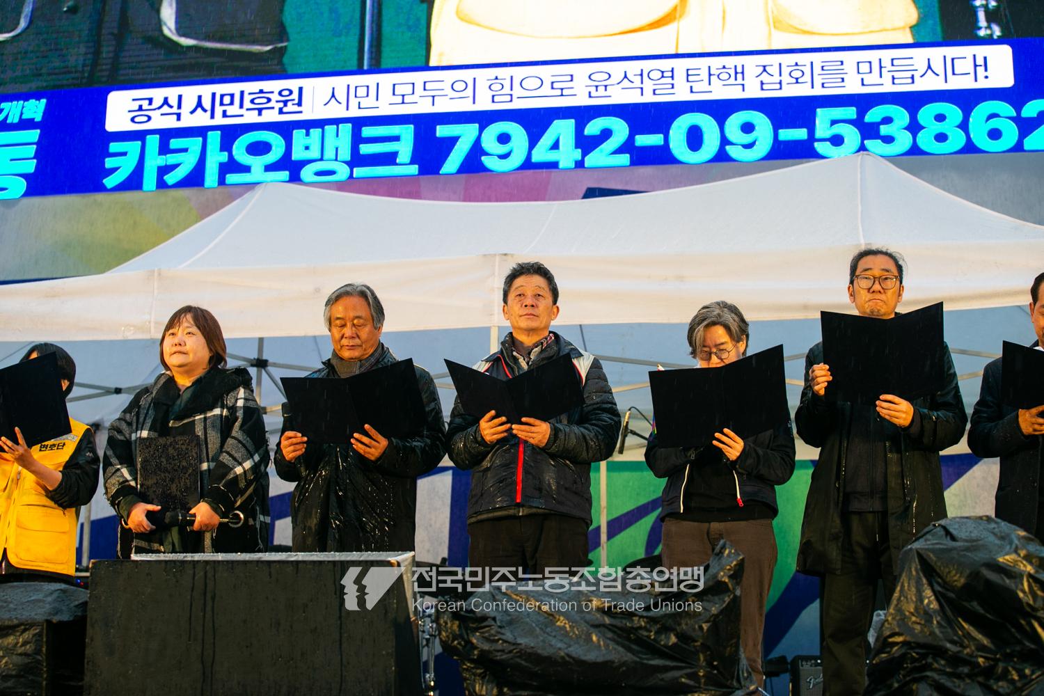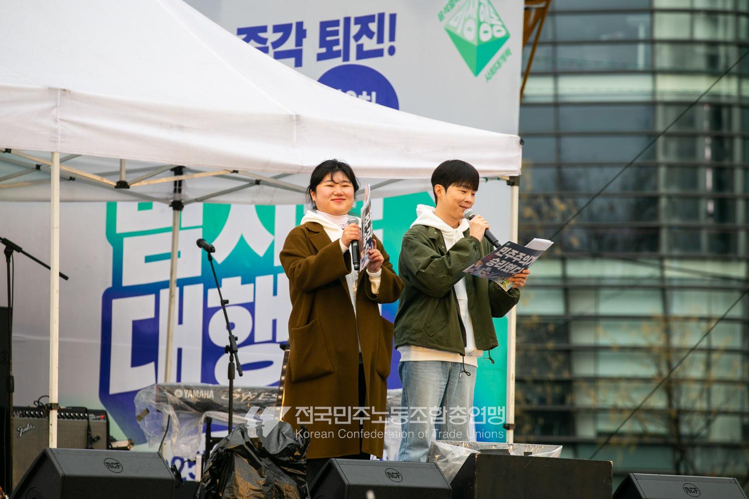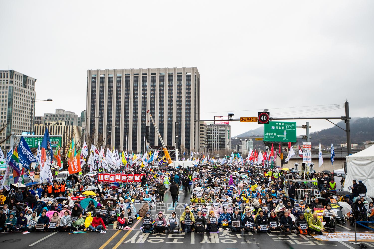 윤석열즉각퇴진・사회대개혁 비상행동은 윤석열이 파면된 다음날 제18차 범시민대행진을 서울 광화문 동십자각에서 열었다. 123일 동안 거짓과 폭력, 혐오에 맞선 진실과 연대, 빛의 혁명이 승리를 만들어냈다. 민주노총도 범시민대행진에 함께하며 “파면은 끝이 아니라 새로운 시작이다. 내란세력 청산과 새로운 사회를 향해 함께 나아가자”라고 결의를 다졌다. 2024년 12월3일 윤석열 비상계엄으로부터 123일이 지난 2025년 4월4일 시민들은 대통령 윤석열을 파면했다. 비상계엄 이튿날 오전 윤석열 퇴진으로 국민주권을 실현하고자 전면적 저항운동을 선포한 비상행동 또한 이날 범시민대행진까지 123일간 투쟁하며 민주주의의 승리를 가져왔다.