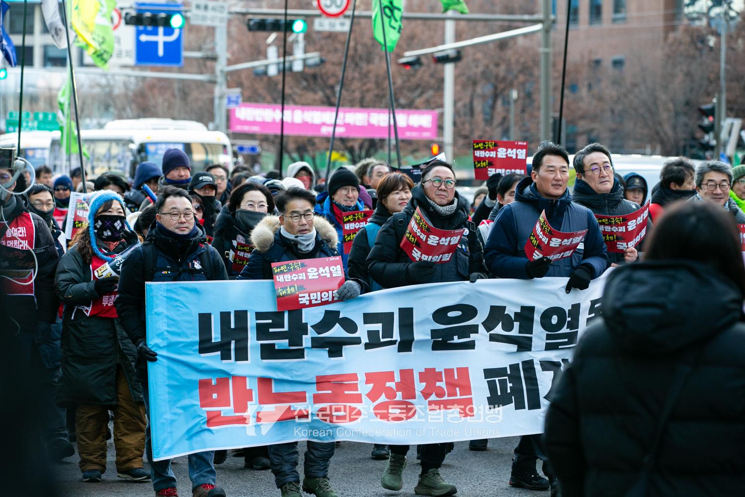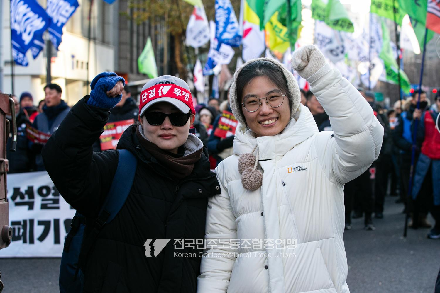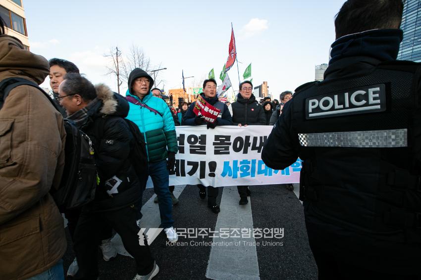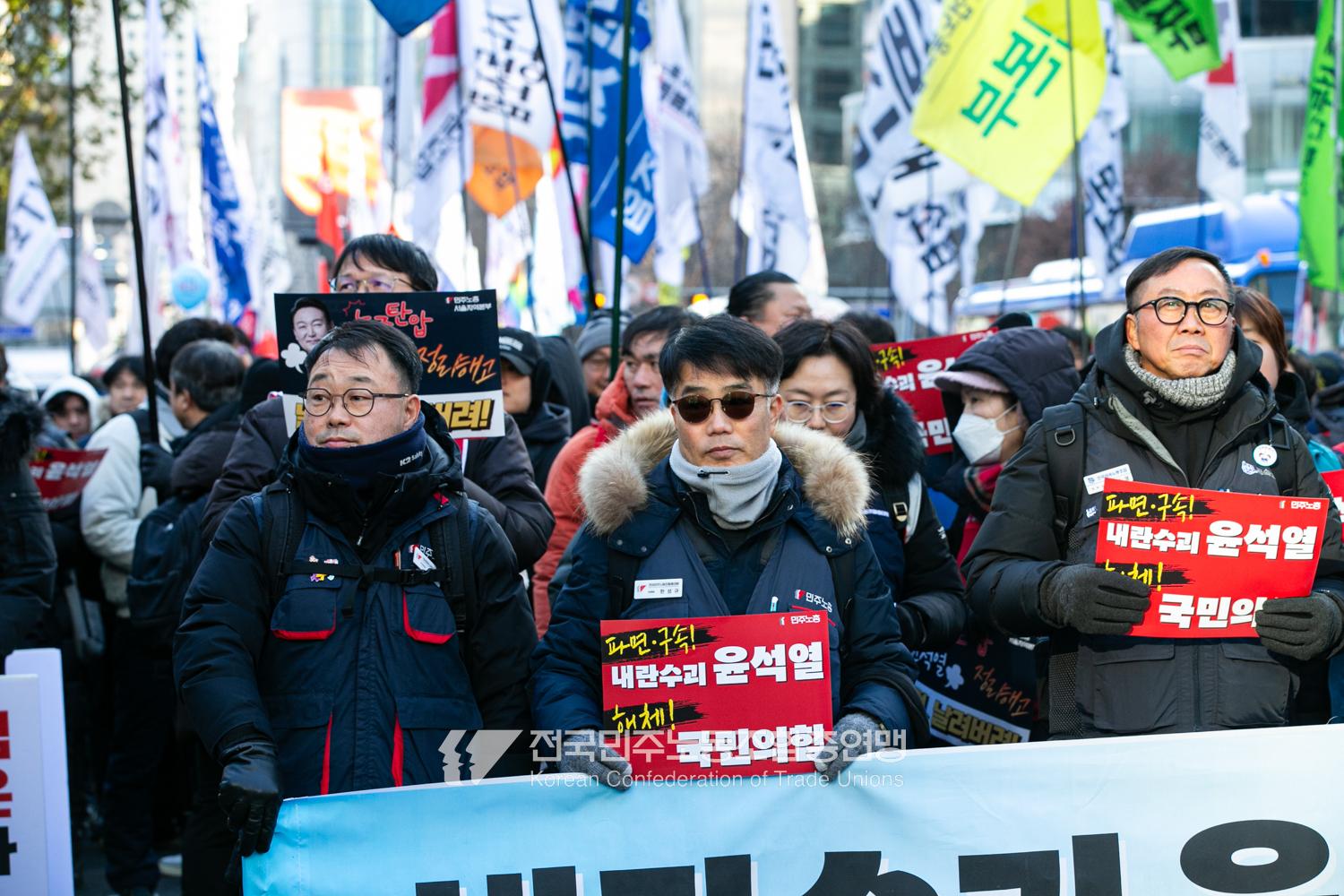 2024년 마지막 토요일에도 민주노총 행진은 멈추지 않았다. 민주노총은 12월28일 내란범 윤석열 탄핵, 헌법재판소의 신속한 판결 촉구, 사회대개혁 쟁취를 위한 행진을 4차 범시민대행진에 앞서 종로 보신각에서 시작했다. 민주노총은 윤석열 탄핵을 넘어 탄핵 이후 만들어 갈 사회대개혁을 시민들과 함께 구호로 외쳤다.