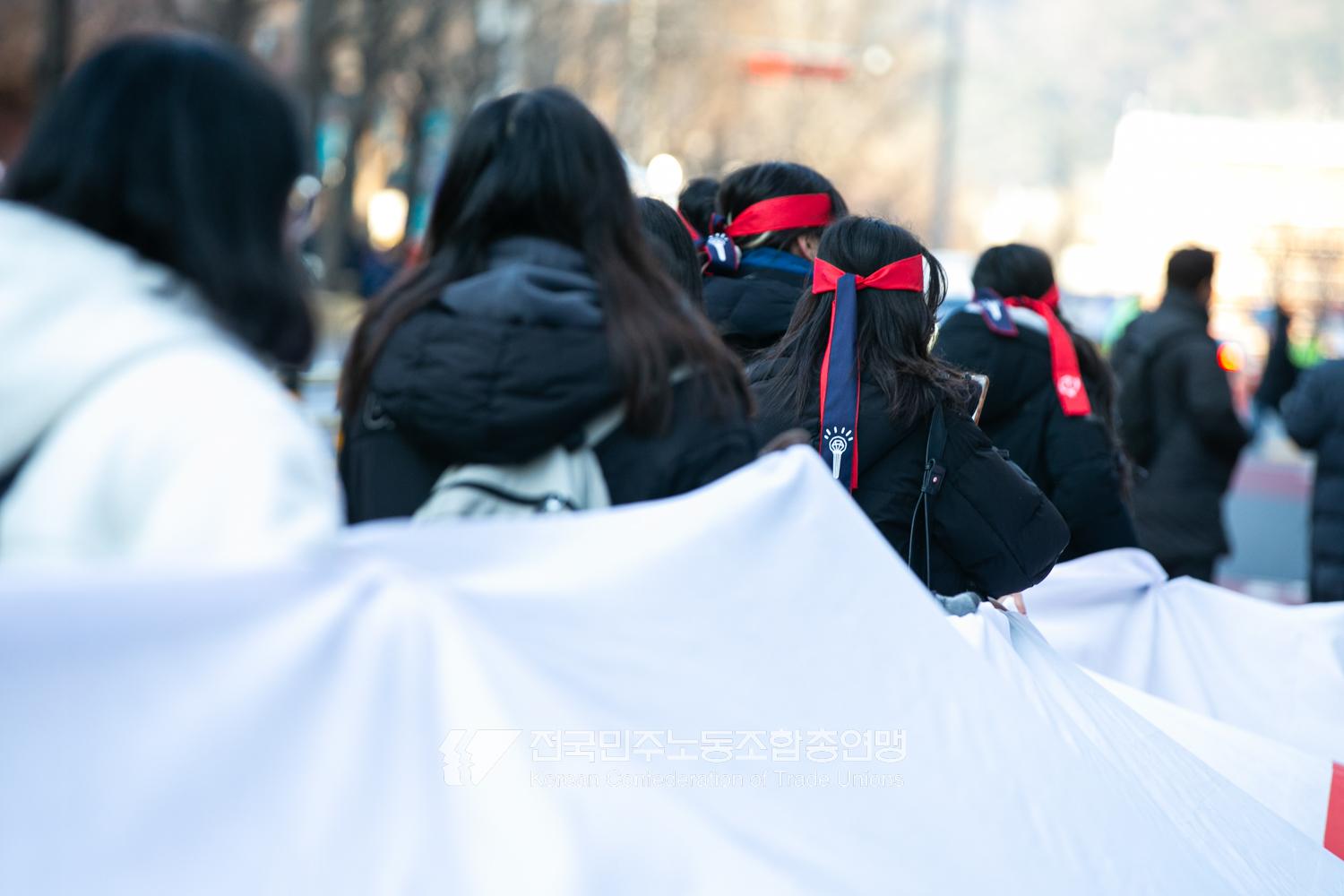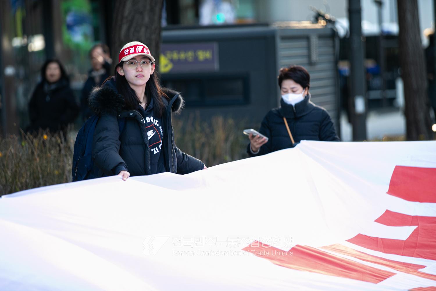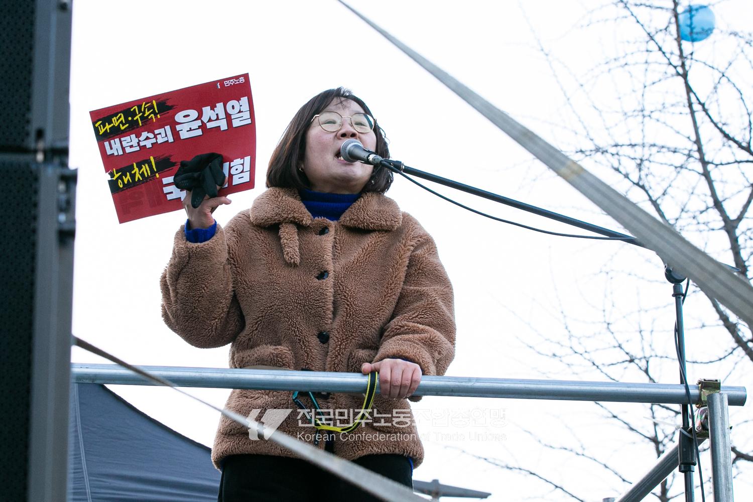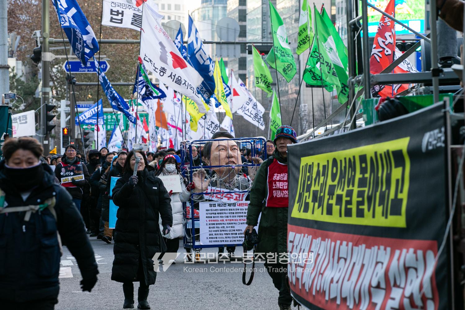 2024년 마지막 토요일에도 민주노총 행진은 멈추지 않았다. 민주노총은 12월28일 내란범 윤석열 탄핵, 헌법재판소의 신속한 판결 촉구, 사회대개혁 쟁취를 위한 행진을 4차 범시민대행진에 앞서 종로 보신각에서 시작했다. 민주노총은 윤석열 탄핵을 넘어 탄핵 이후 만들어 갈 사회대개혁을 시민들과 함께 구호로 외쳤다.