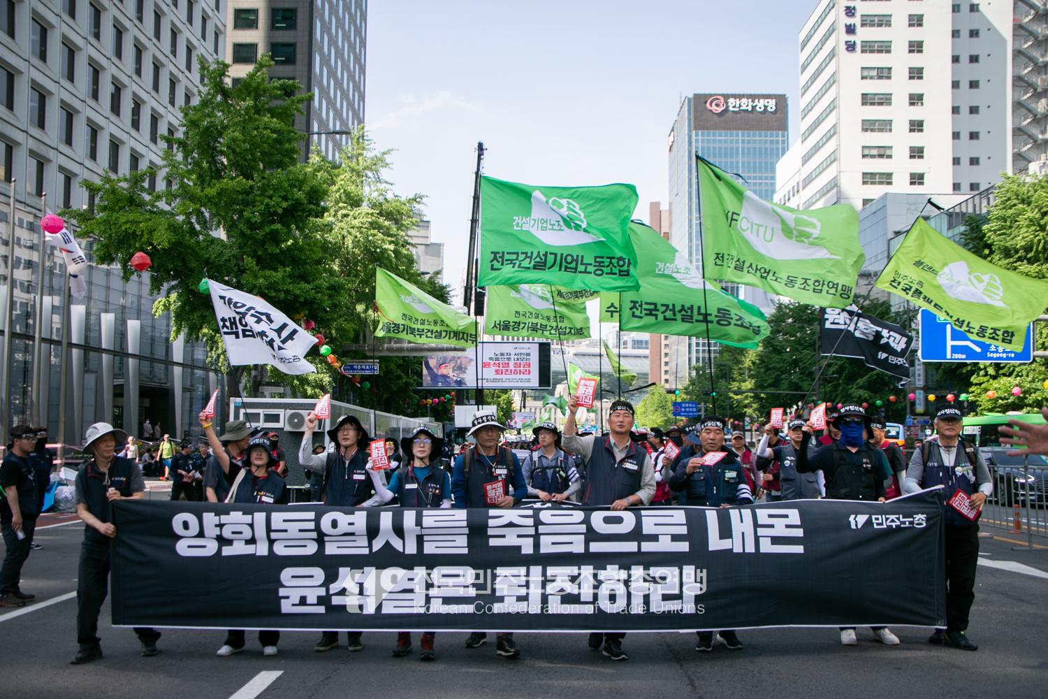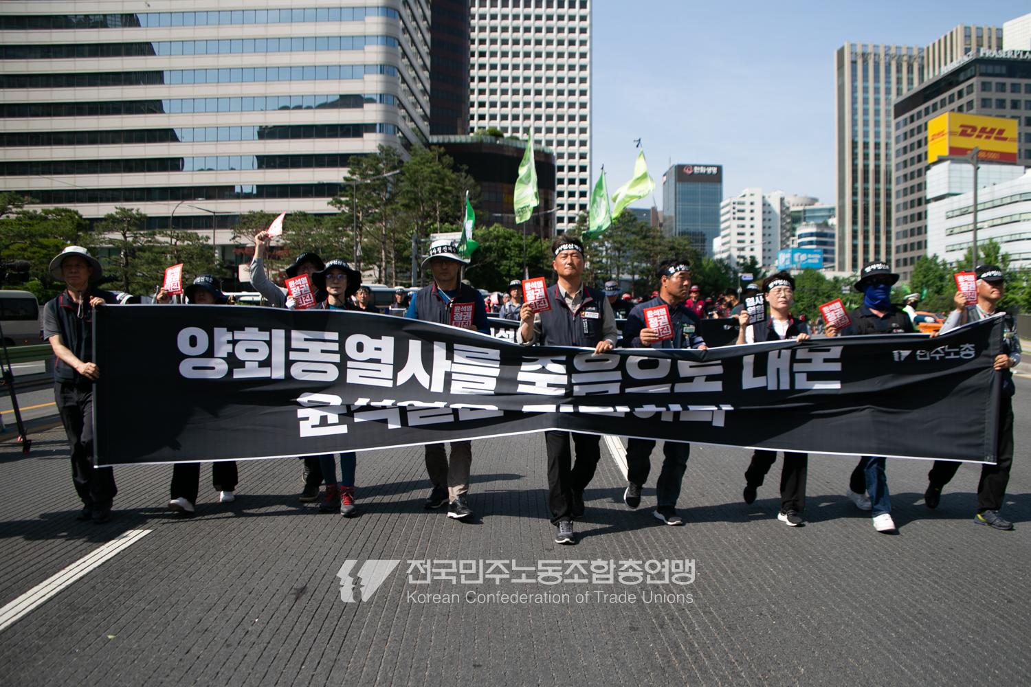 민주노총 조합원과 건설노조 등 3만여 명이 2023년 5월17일 오후 세종대로에 모여 ‘양회동 열사 염원 실현! 노동, 민생, 민주, 평화 파괴 윤석열정권 퇴진! 민주노총 결의대회’를 열었다. 양회동 열사 유족이 무대에 올라 열사의 염원을 지켜달라는 말과 함께 열사에게 보내는 편지를 낭독했다. 이날 대회에서 민주노총은 윤석열정권 퇴진 투쟁에 나서는 것이 열사의 유지이자 열사정신을 계승하는 것이라며 당시 6월 최저임금 투쟁, 7월 총파업까지 함께 돌파해나갈 것을 결의했다. 본대회를 마친 민주노총 조합원들은 삼각지와 혜화동 방면으로 행진한 뒤 대회를 마무리했다.