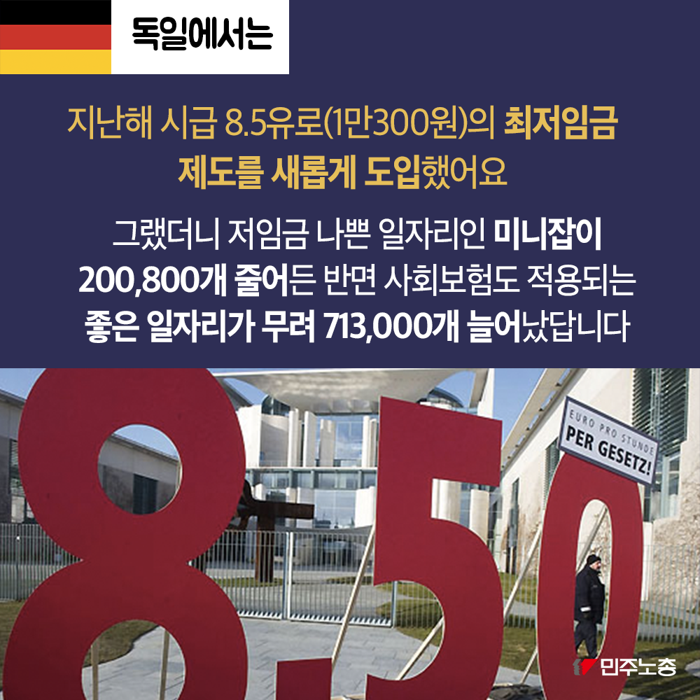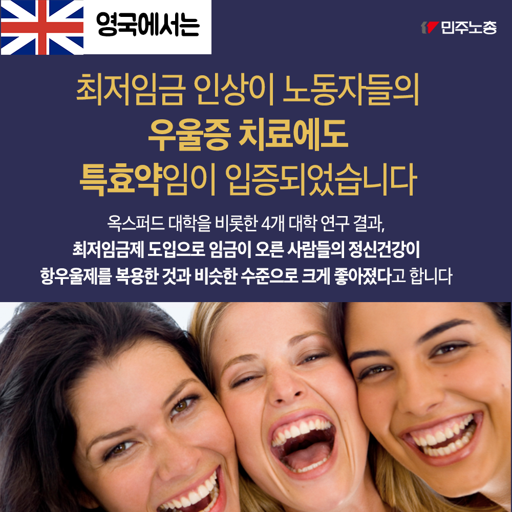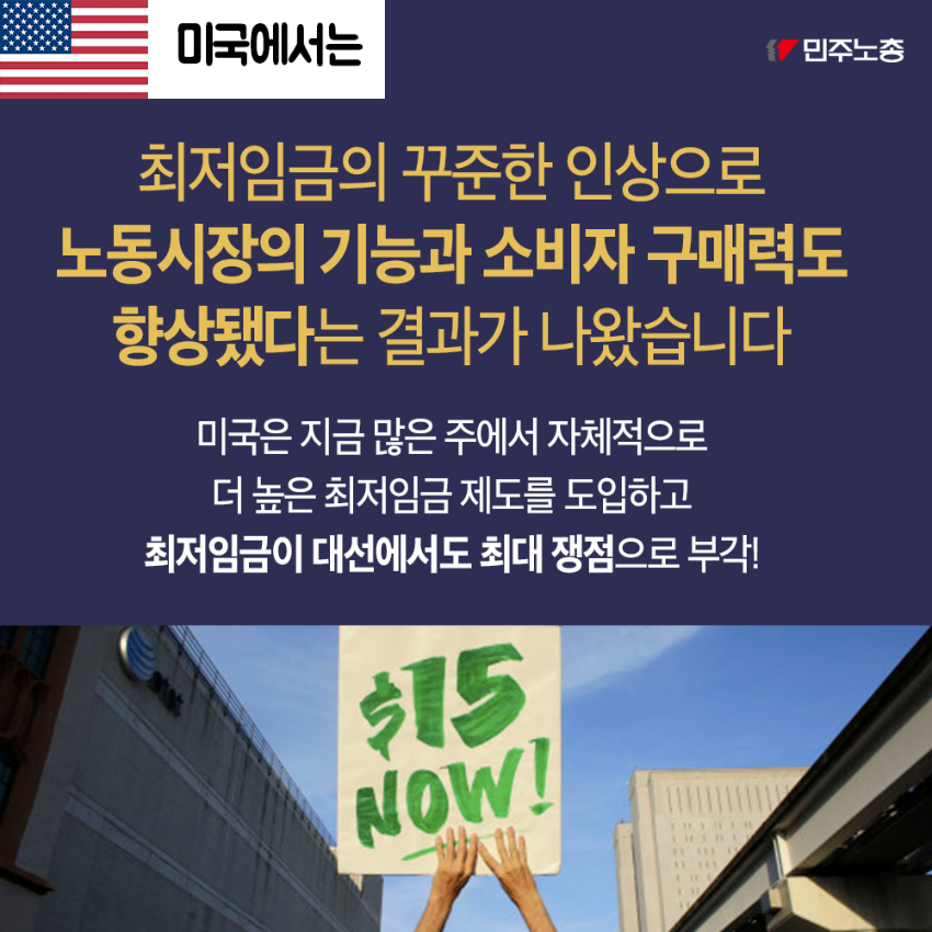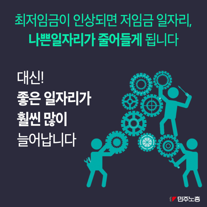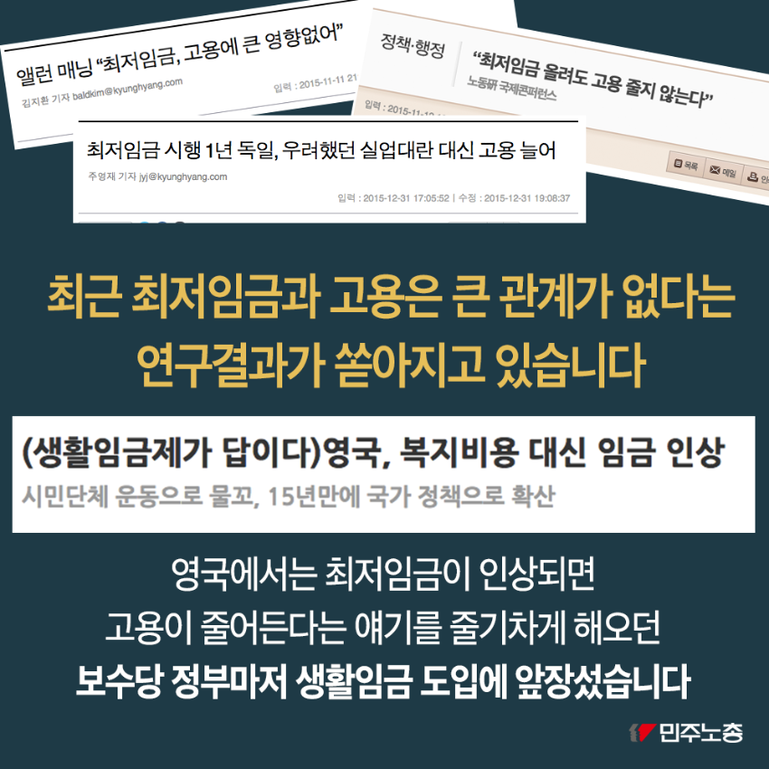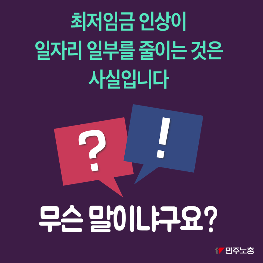 민주노총은 최저임금 인상이 노동자 삶의 질 향상에 기여한다고 주장한다. 해외 사례를 들어 최저임금 인상이 노동자의 우울증 치료, 노동 시장 기능 강화, 소비자 구매력 향상에 긍정적 영향을 미쳤음을 제시한다. 또한 최저임금 인상이 저임금 일자리를 감소시키고 사회보험 적용 일자리를 증가시킨다는 점을 강조한다. 민주노총은 최저임금 인상과 일자리 감소 간의 관계에 대한 사회적 논의를 촉구하며 노동자 권익 보호를 위한 입장을 표명한다.