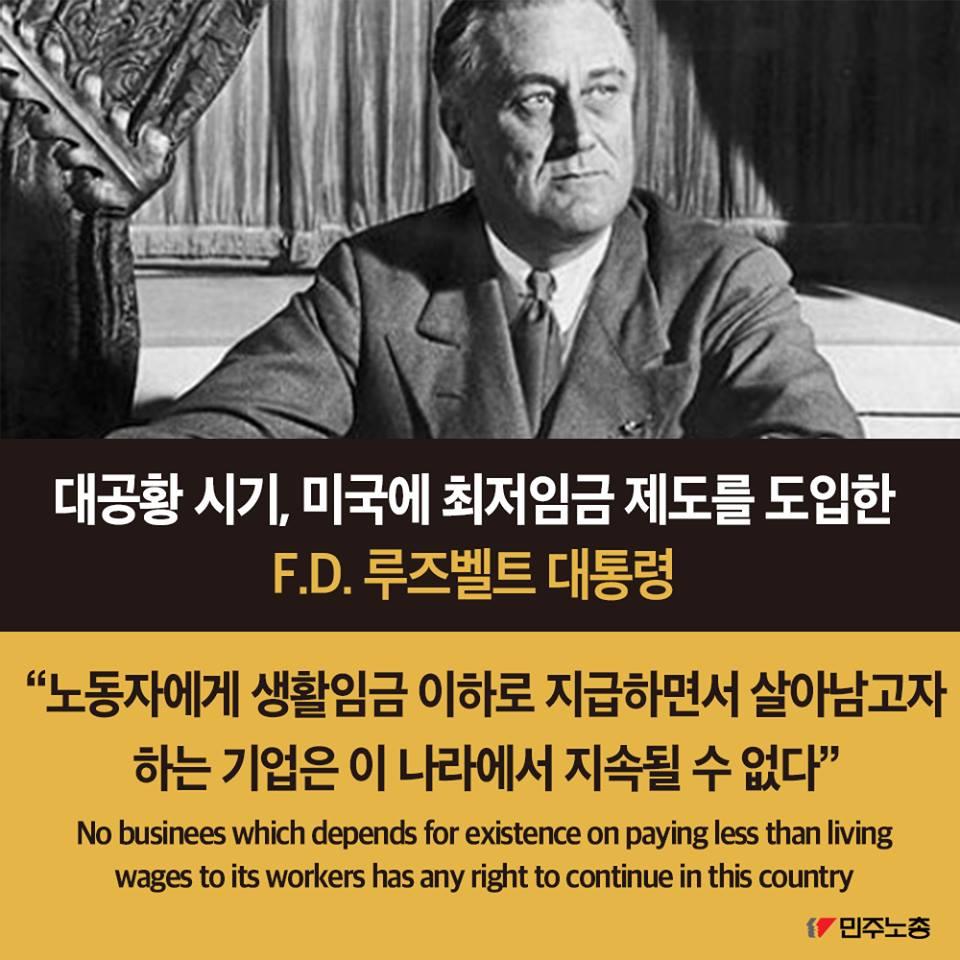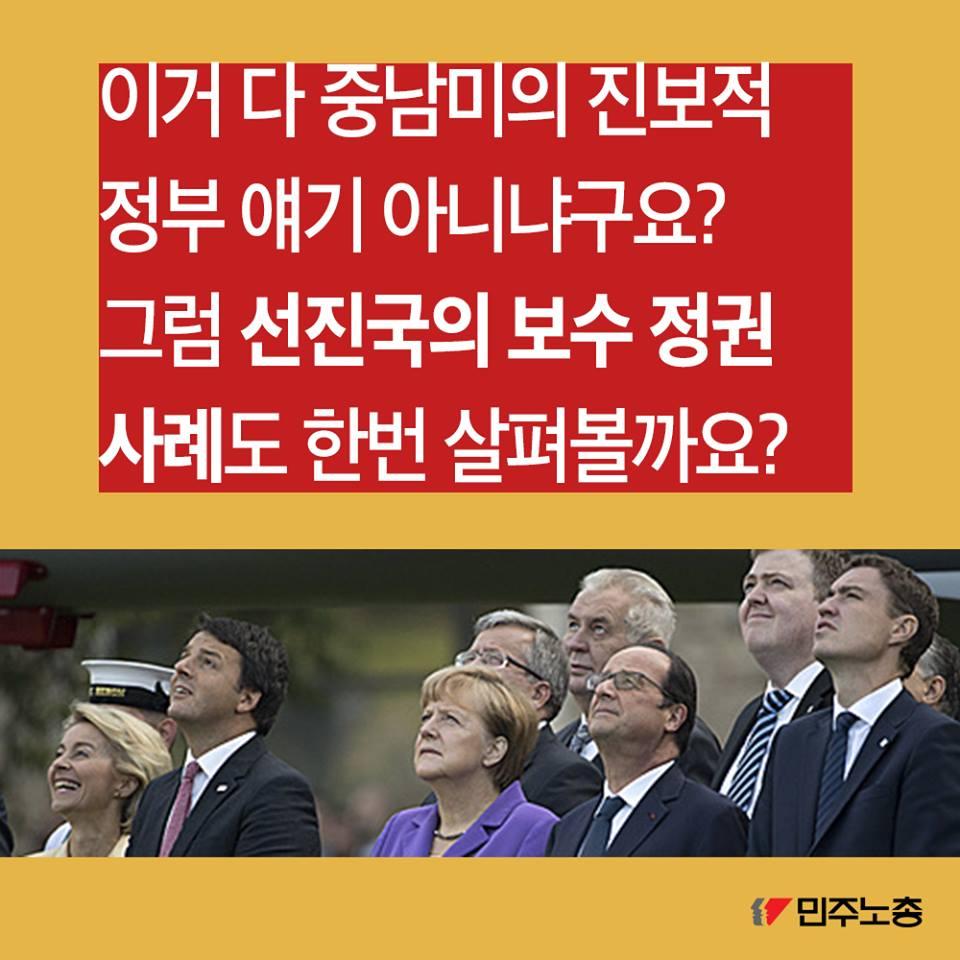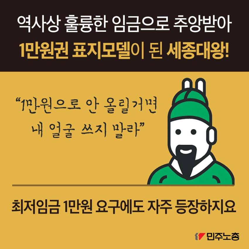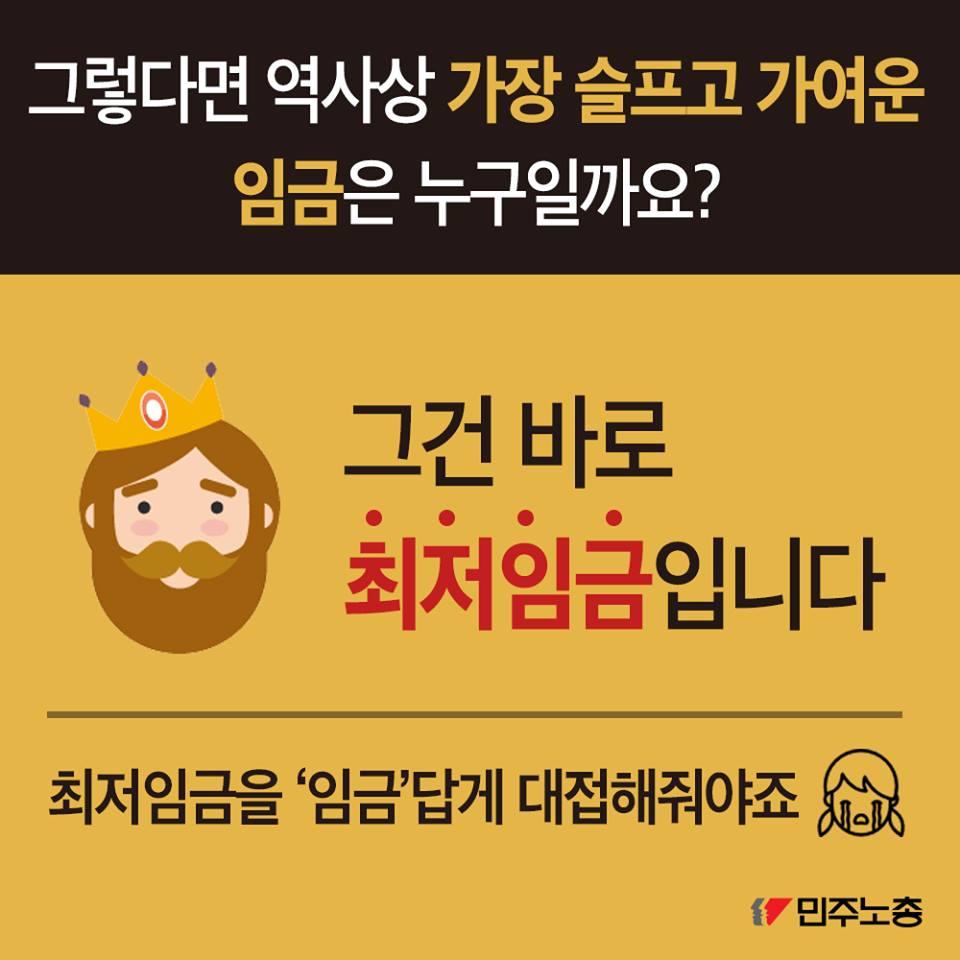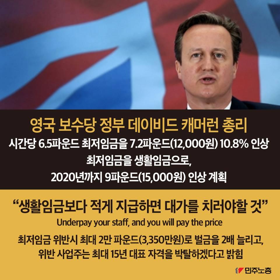 민주노총에서 제작한 최저임금 인상 요구 관련 웹자보 자료이다. 국내 최저임금 1만원 인상 필요성을 주장하며, 비정규직 철폐 및 노동시간 단축 등 노동자 권리 보장을 요구하고 있다. 주요 국가 지도자들의 최저임금 정책 사례를 소개하며 한국 정부의 정책 방향에 대한 비판적 시각을 제시한다. 2016년 전국노동자대회 개최를 알리고 있다.