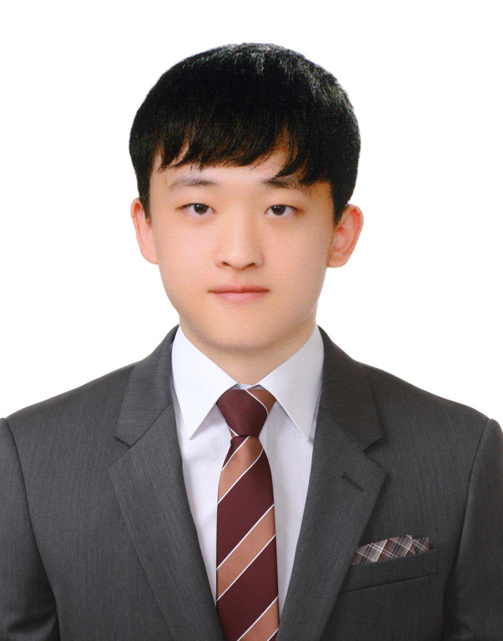 제공된 이미지는 정장을 입은 아시아 남성의 인물 사진이다. 남성은 흰색 셔츠에 갈색과 베이지색 줄무늬 넥타이를 착용하고 있다. 회색 정장 재킷에는 포켓 스퀘어가 보인다. 사진은 흰색 배경에서 촬영되었다.
