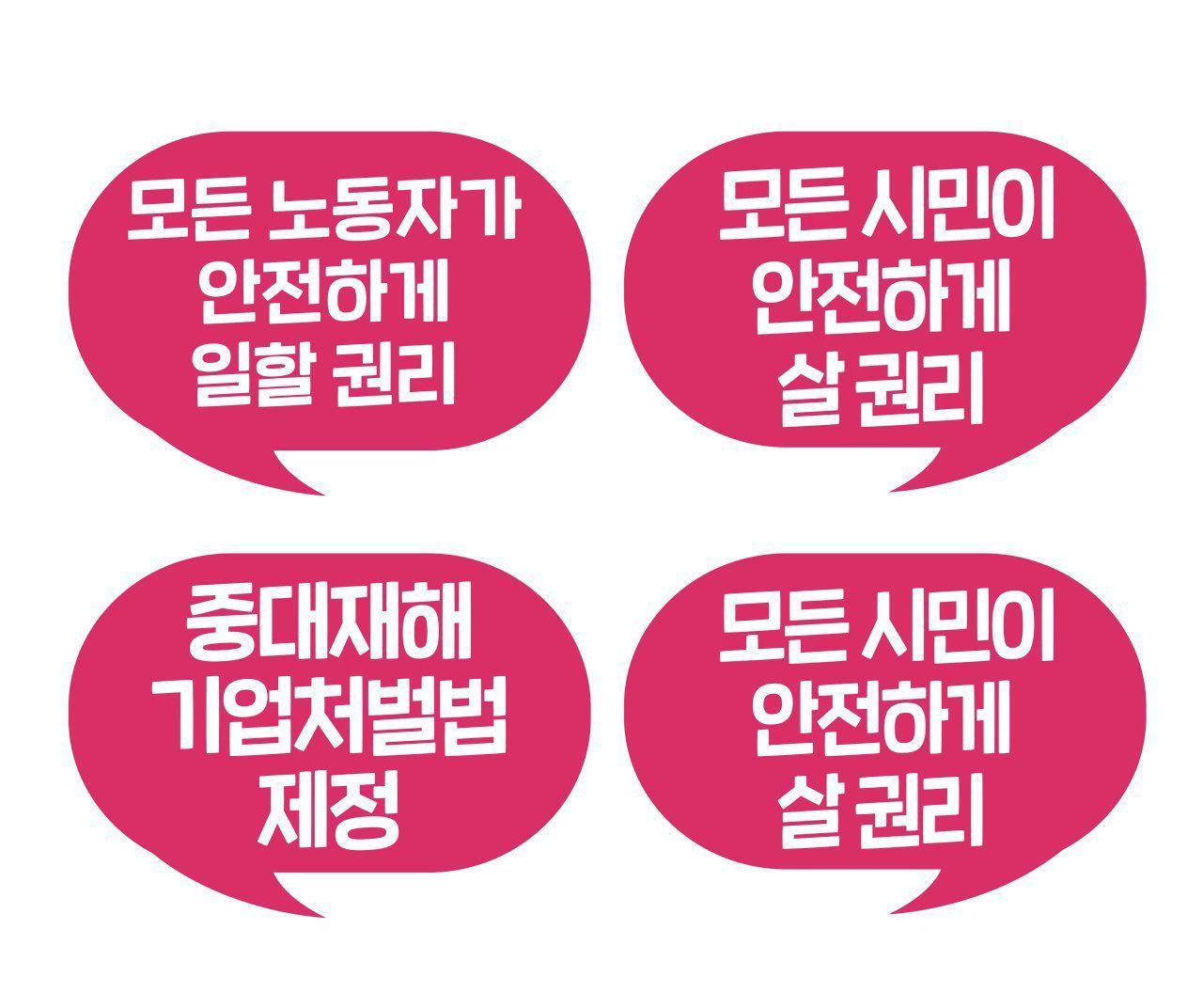 웹자보 이미지로, 모든 노동자가 안전하게 일할 권리를 주장한다. 모든 시민이 안전하게 살 권리를 강조하며, 중대재해 기업처벌법 제정을 요구한다. 노동자의 안전과 시민의 생명권을 보장하기 위한 사회적 요구를 담고 있다.