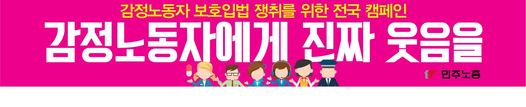 본 웹자보는 감정노동자 보호입법 쟁취를 위한 전국 캠페인을 알리고 있다. 감정노동자에게 진정한 웃음을 되찾아주기 위한 민주노총의 노력을 보여준다. 다양한 직업군의 감정노동자들을 시각적으로 표현하여 캠페인의 메시지를 강조한다. 감정노동자들의 권익 보호와 근무환경 개선을 위한 사회적 관심을 촉구한다.