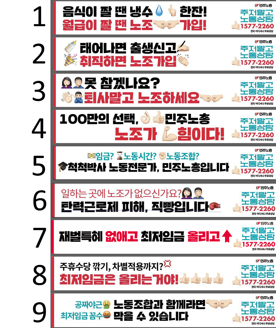 민주노총이 2019년 04월 23일에 게시한 '노조가입 및 현안 현수막 (파일수정)' 현수막이다.