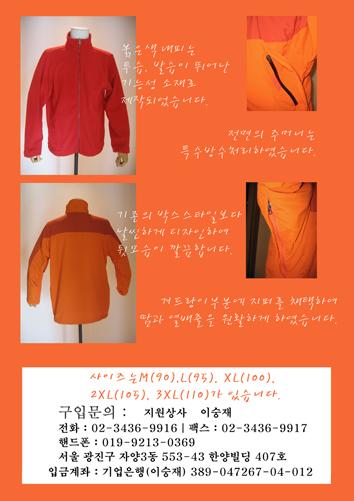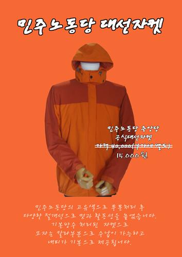 민주노동당에서 제작한 자켓 판매 웹자보이다. 붉은색 네피를 사용하고 투습성이 뛰어난 기능성 소재로 제작되었다. 가슴부분에 지퍼를 채택하여 땀과 열배출을 원활하게 한다. 민주노동당의 고유색으로 투톤 처리 후 다양한 절개선으로 활동성을 높였다. 모자는 탈부착이 가능하고, 내피가 기본으로 제공된다.