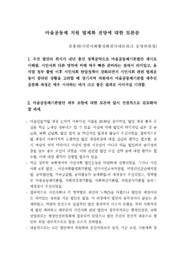마을공동체 활성화를 위한 법제화 전망 토론회 자료집_토론02