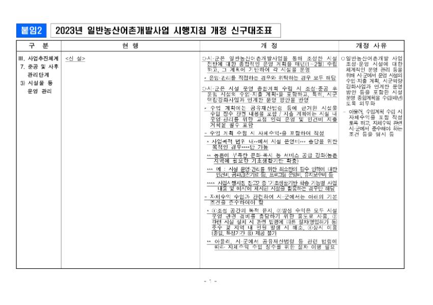 2023년 일반농산어촌개발사업 시행지침 개정 신구대조표