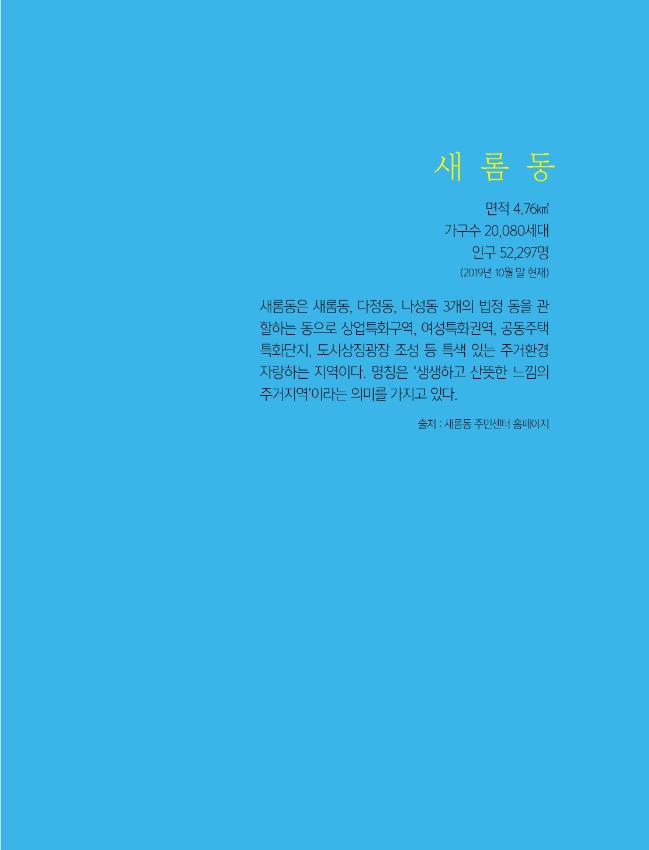「세종마을」 발간을 34만 시민과 함께 축하하며, 앞으로 마을계획단에 더 많은 시민 참여가 이어져 남이 이웃이 되고, 우리 마을이 고향처럼 따뜻한 공동체가 되기를 바 랍니다. 끝으로 시민주권대학과 마을공동체지원센터 관 계자 여러분, 그리고 마을계획단에 참여해 주신 시민 여 러분께 깊은 감사의 말씀을 전합니다.