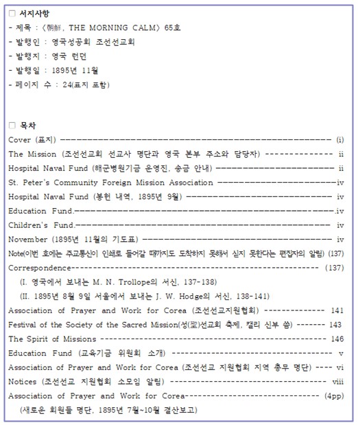 영국성공회 조선선교회가 런던에서 펴낸 잡지 〈모닝캄〉 65호