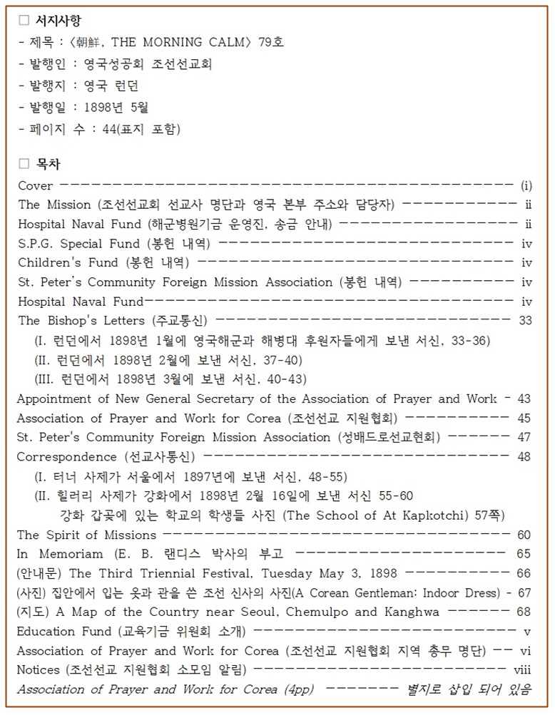 영국성공회 조선선교회가 런던에서 펴낸 잡지 〈모닝캄〉 76호