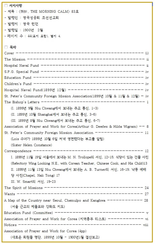 영국성공회 조선선교회가 런던에서 펴낸 잡지 〈모닝캄〉 83호